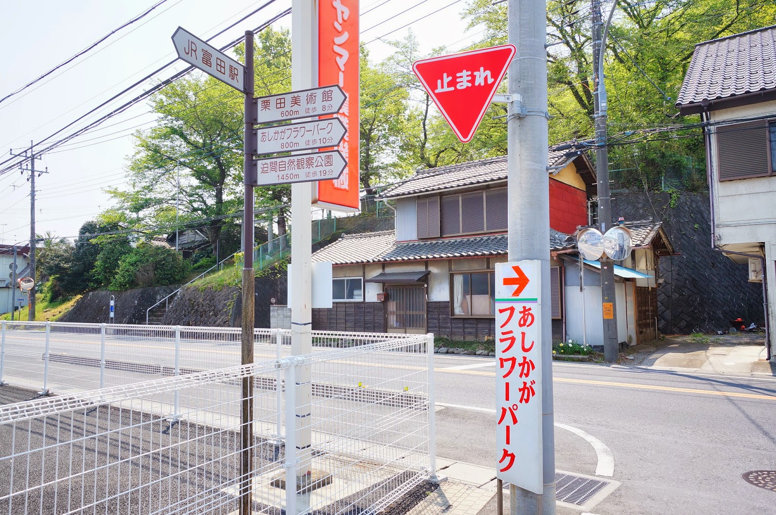 到富田站後,班次並不密集,記得再確認一下坐回小山站的班次。出富田站後,往前走沿路都會有往あしかがフラワーパーク的指示,約走15-20分可到達。