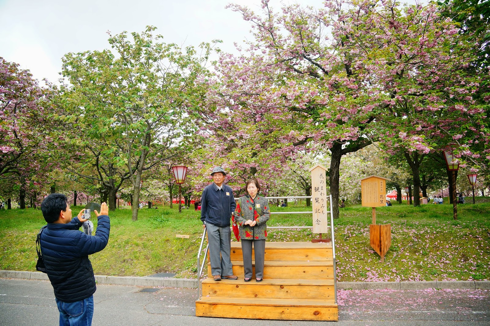 造幣局內有各式的櫻花,今年的主花是「花笠」