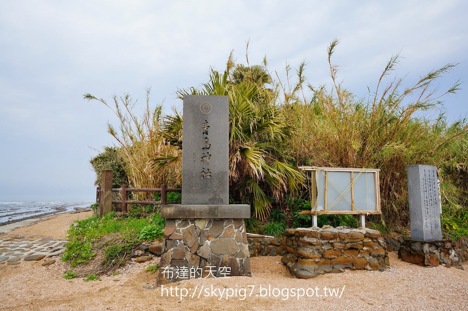 從ANA飯店後側可步行前往,沿沙灘走過去可以看到左前方就是青島神社了