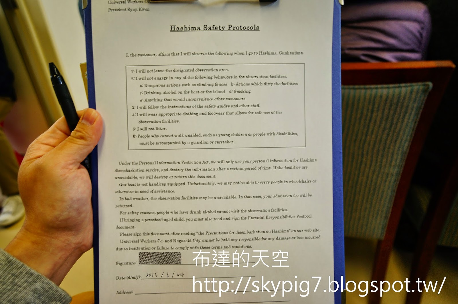 接著去候船室看影片,填同意書