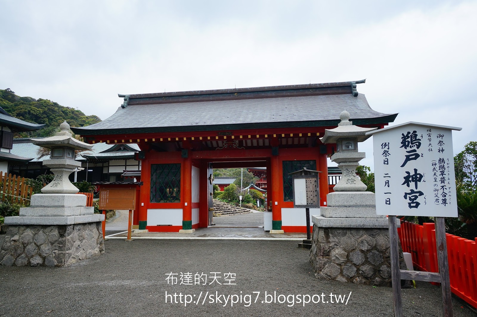 下車後,跟著大家走,上階梯後會看到鵜戶神宮的石碑