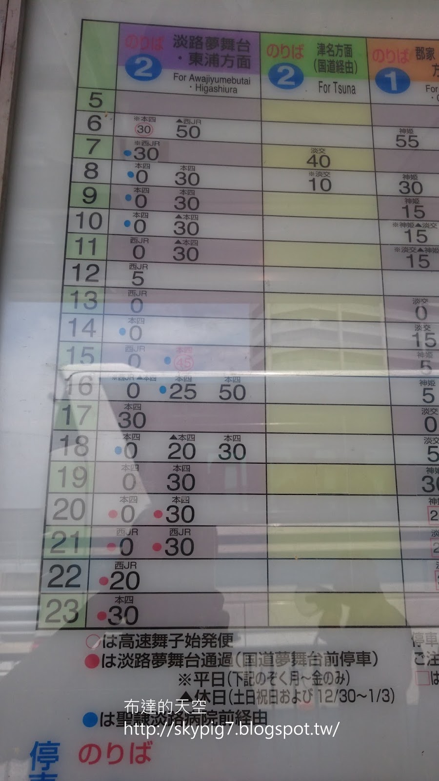 其實從這裏到淡路夢舞台的班次也不多,平均也是一個小時一班,下圖上有些是30分開的是假日才有行駛