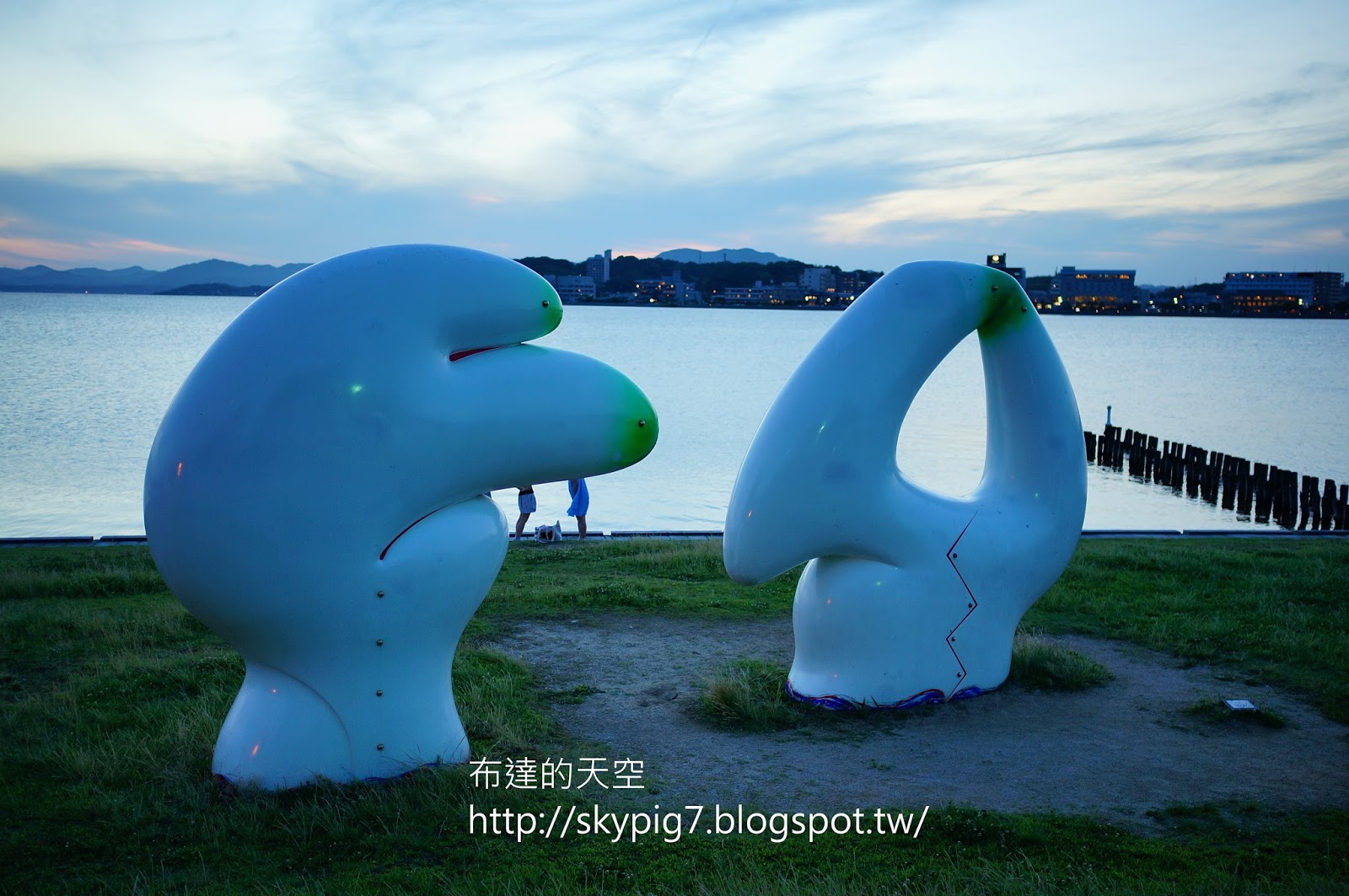 美術館就蓋在宍道湖旁,可以坐在椅子上,坐上一整天看著宍道湖發呆