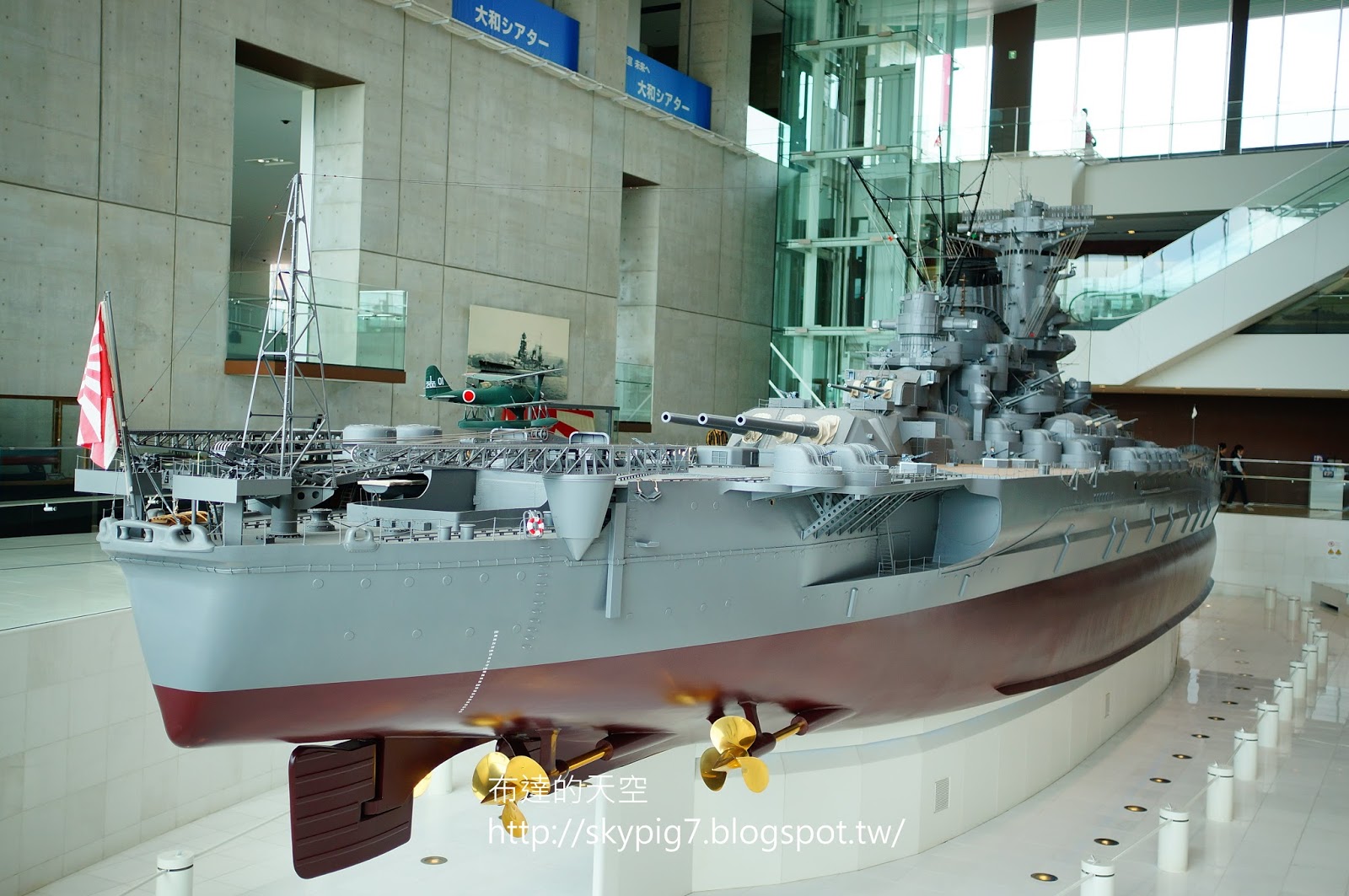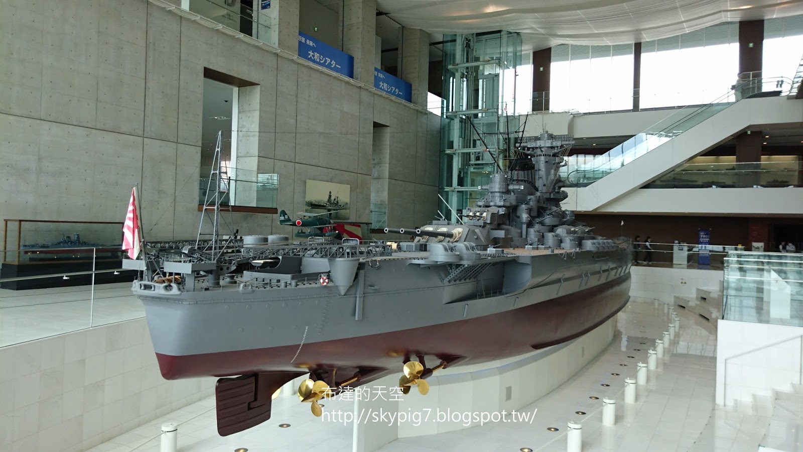 還可上三樓,有未來館可以逛,不過感覺沒什麼人,所以沒進去。然後在二、三樓繞了一圈,又把大和艦各種角度照一次,還真閒咧