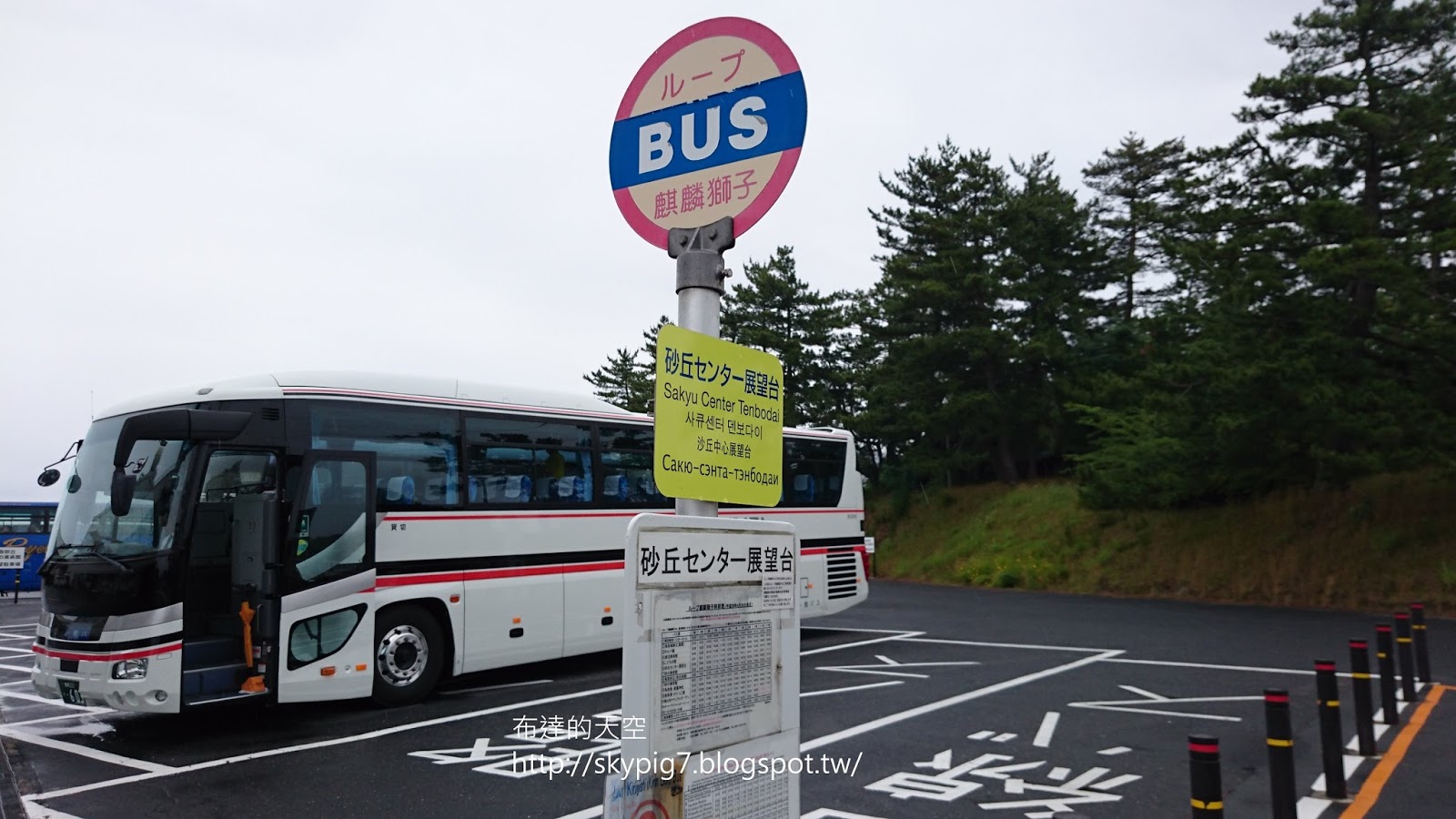 首先坐「ル一プ麒麟獅子」バス在⑥砂丘センター展望台,或⑦砂の美術館前下車,差別是入口不一樣,看底下這張官網的圖就可以知道鳥取砂丘跟 砂の美術館以及站牌的相對位置。