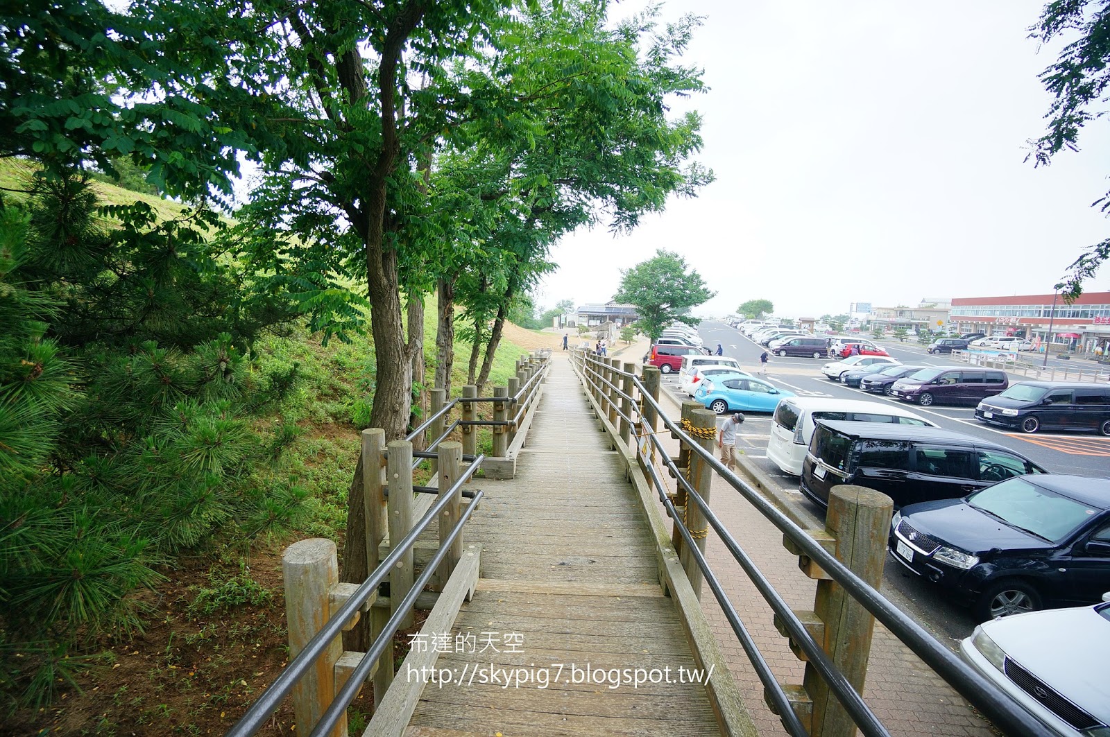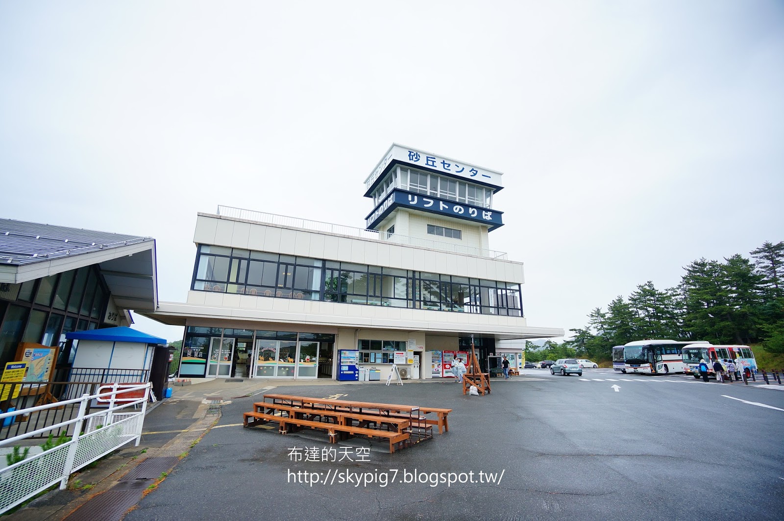 抵達終點,最右邊是⑥砂丘センター展望台,最左邊是搭纜車處,中間是售票處,也可買砂之美術館的票