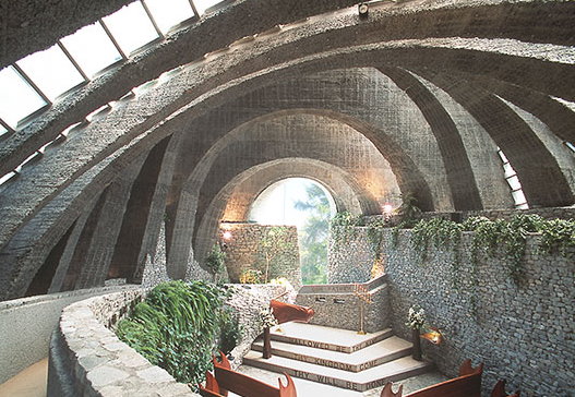 「石の教會」是1988年美國建築師Kendrick Kellogg在亞洲唯一建造的稀有建築物,繼承了”有機建築”的概念興建而成,由石頭與玻璃建造而成的拱門,另外劃出多道圓弧,覆蓋了整個教會的天花板,透過玻璃投射進來的光線,隨著時間的流逝展現出不同的風貌。 (參考資料:中文官網)