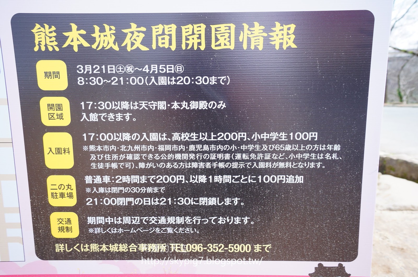 接下來往熊本城天守閣邁進,總算看到櫻花了,因為是櫻花季的末期來,所以能看到櫻花還蠻高興的