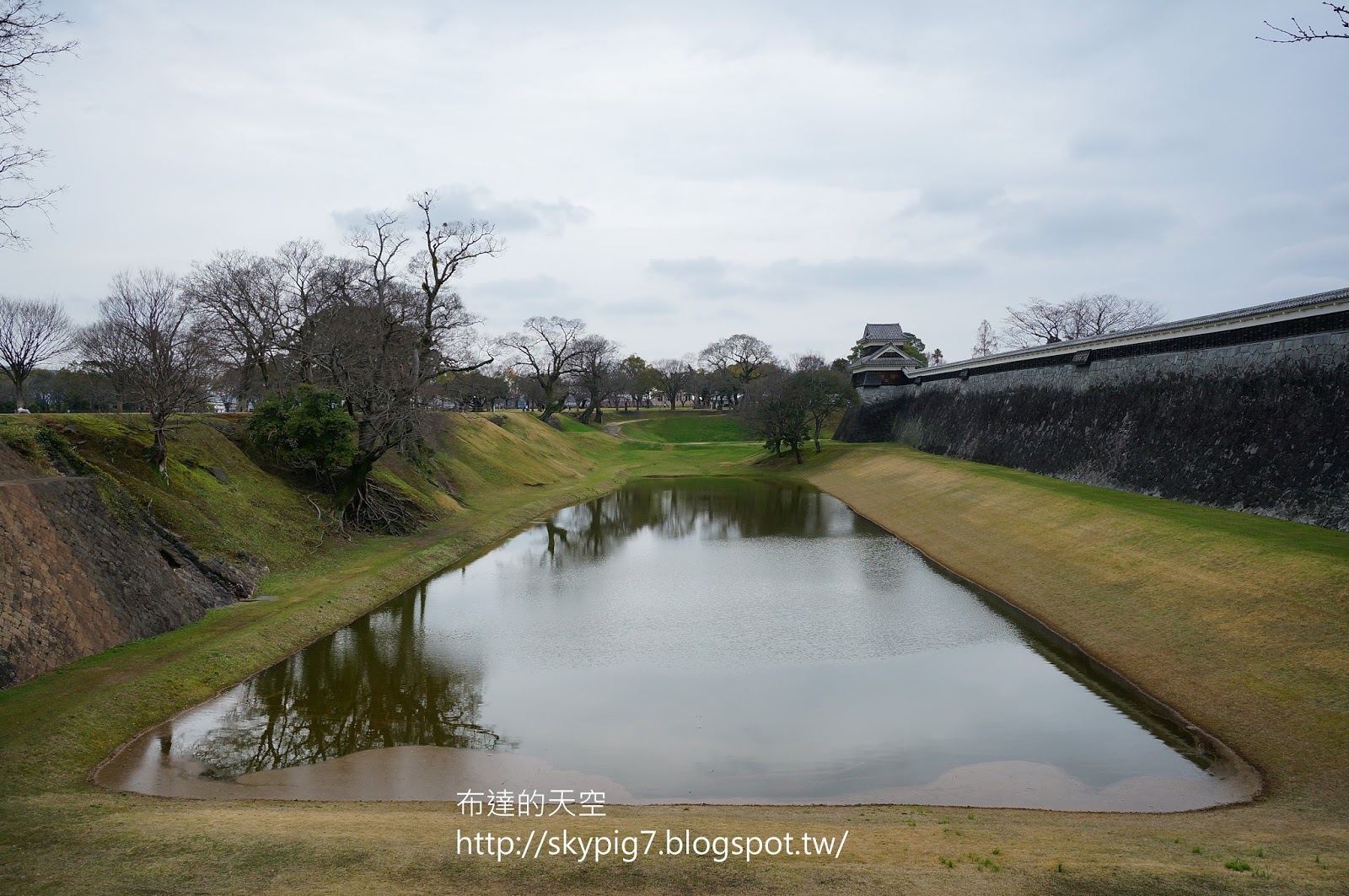 出城後,繞著城走一圈,從這個角度拍,更可以感覺熊本城「武者返し」的稱號,這種城牆,是叫人要怎麼爬上去