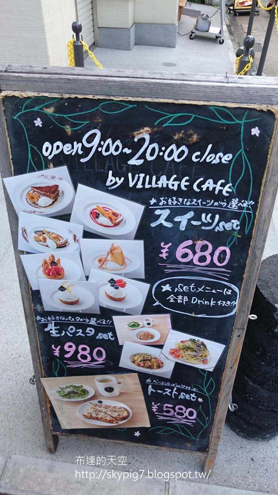其實小町通り上蠻多餐飲店的,但是我特愛甜點,所以選了一家看起來好吃,價格不貴的店進去吃看看,看板上寫著甜點加飲料的set只要680円,義大利麵的set要980円,土司set要580円
