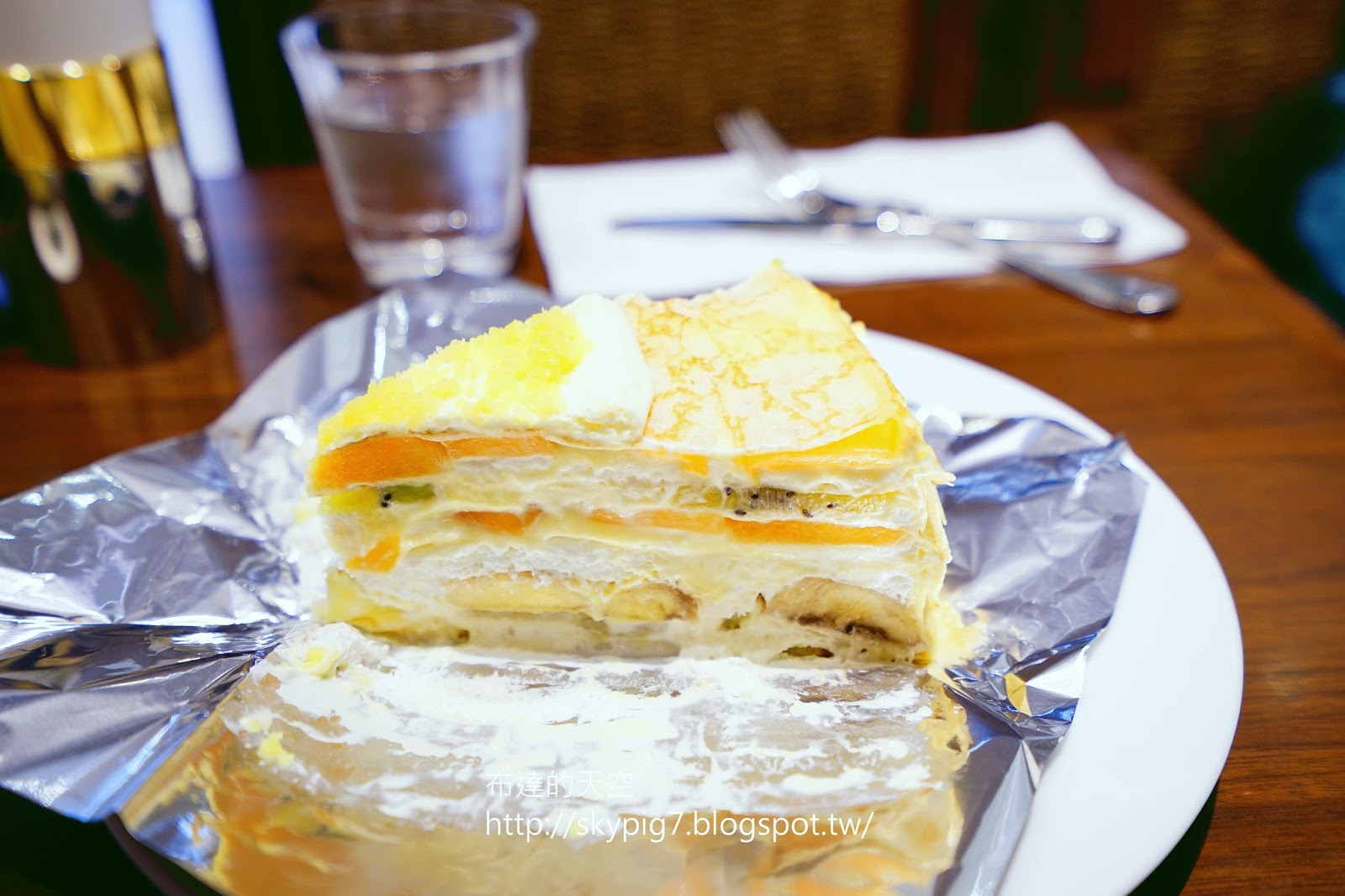 在蛋糕裏面裝滿了各式水果,只能說這份蛋糕非常的澎湃,蛋糕鬆飲,水果新鮮,以蛋糕來講,算是非常的好吃