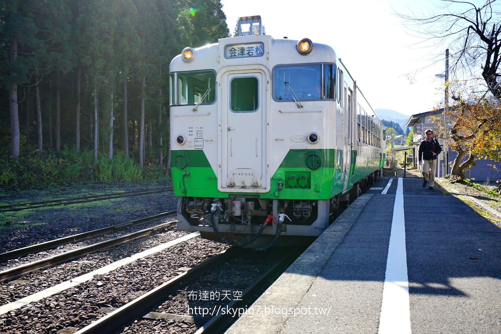 拍完之後,離發車時間「会津宮下➔(JR只見線13:02)➔会津若松」還有段時間,所以又跑回去拍。這是B點的景觀,陰影已大致退去
