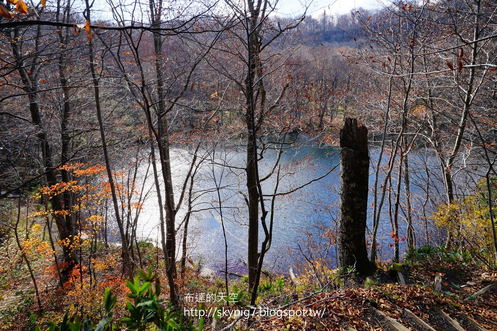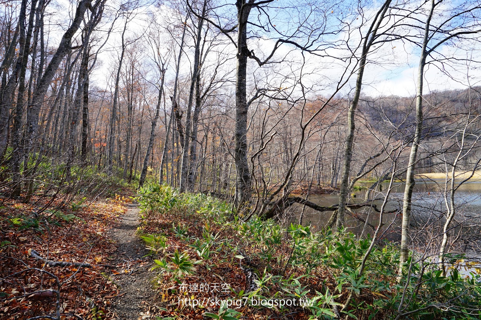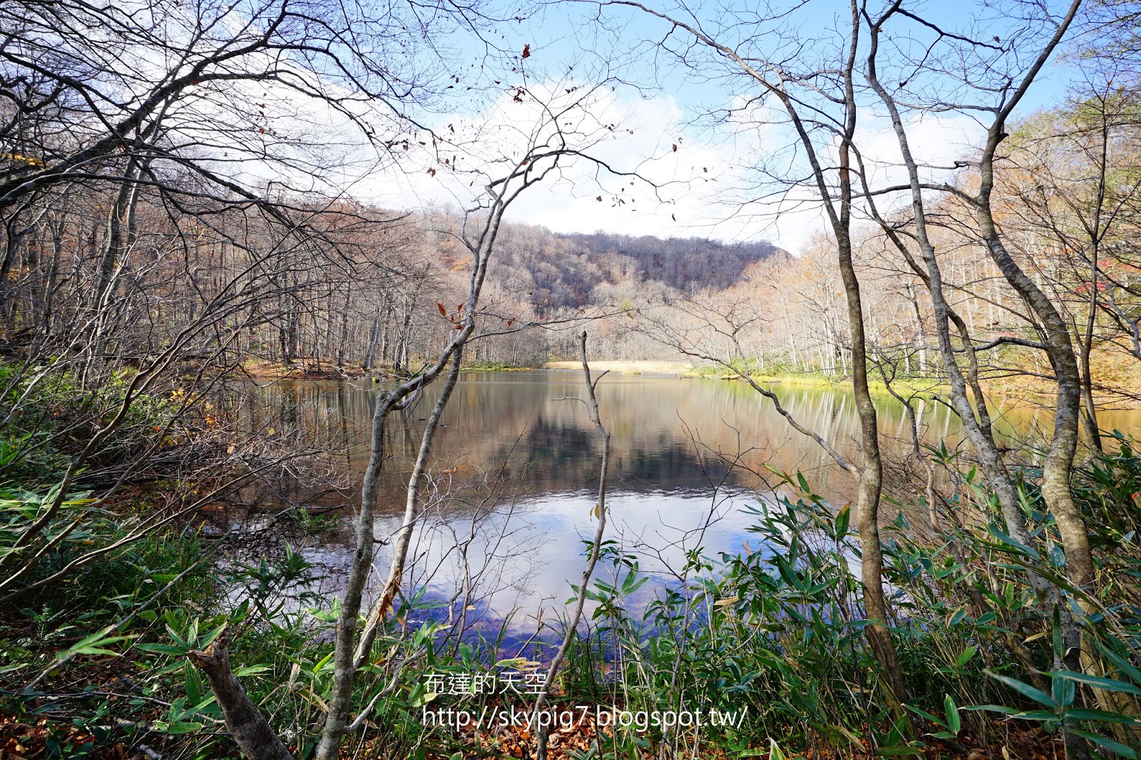 雖只見落葉於水裏,但看著枯木的倒影映入水面,加以藍天白雲點綴,心想這趟來對了