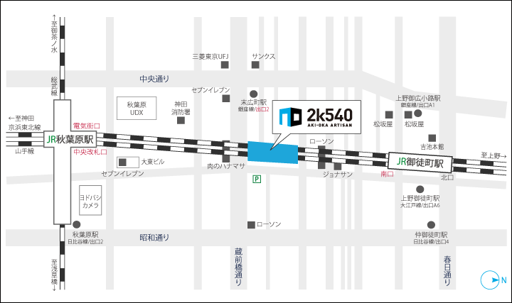 2k540就位於秋葉原與御徒町之間的JR鐵道下