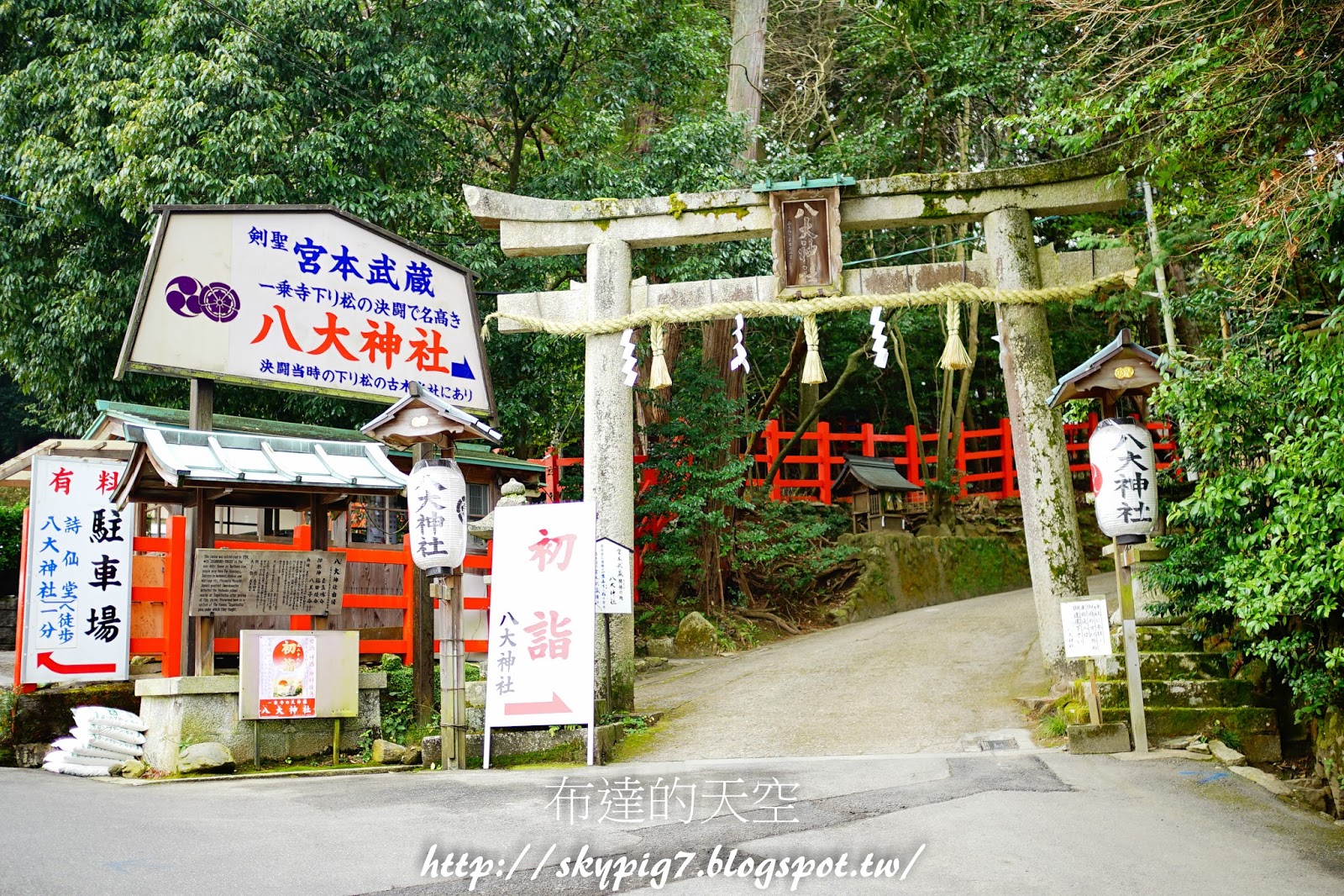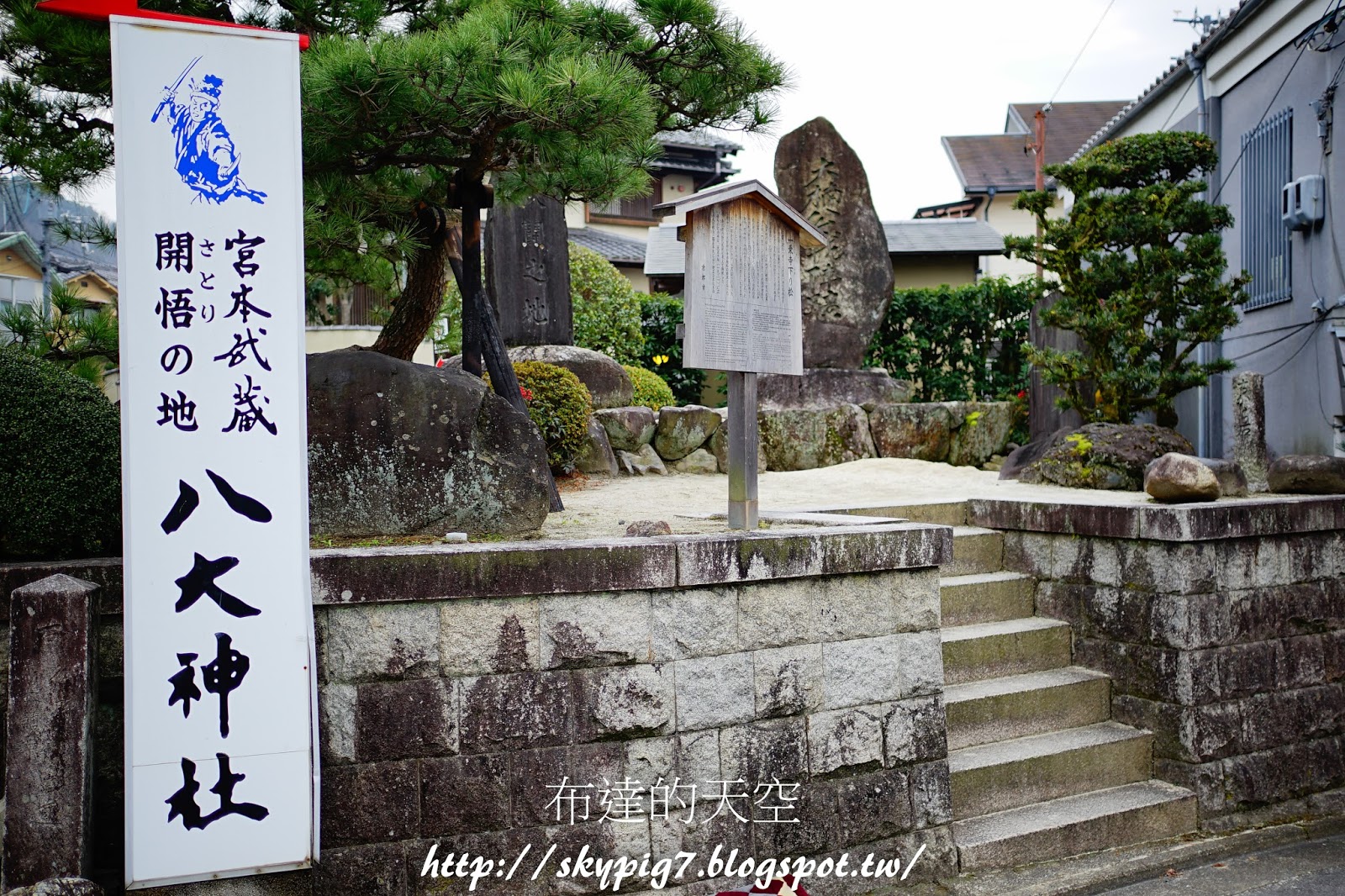 逛完詩仙堂後,繼續往上走到八大神社,打著劍聖宮本武藏的招牌,讓人很想進去一探究竟