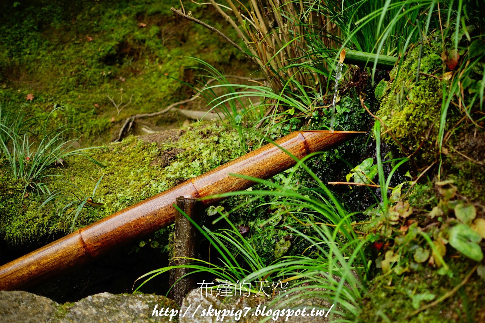 「添水」,在日本庭院造景常見到,又稱鹿威,常由竹子製成,通過水力驅動發出響聲驅趕動物的裝置