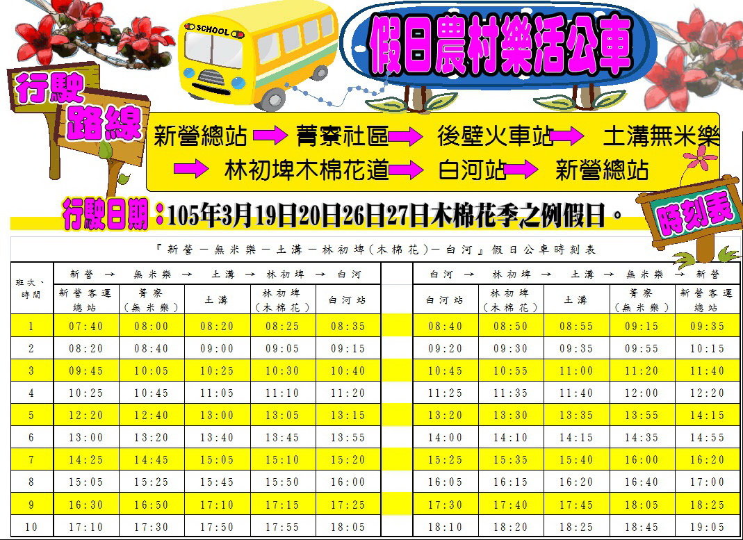 二高白河交流道→延172線道→165線道→大德街→南89開車約10分鐘。