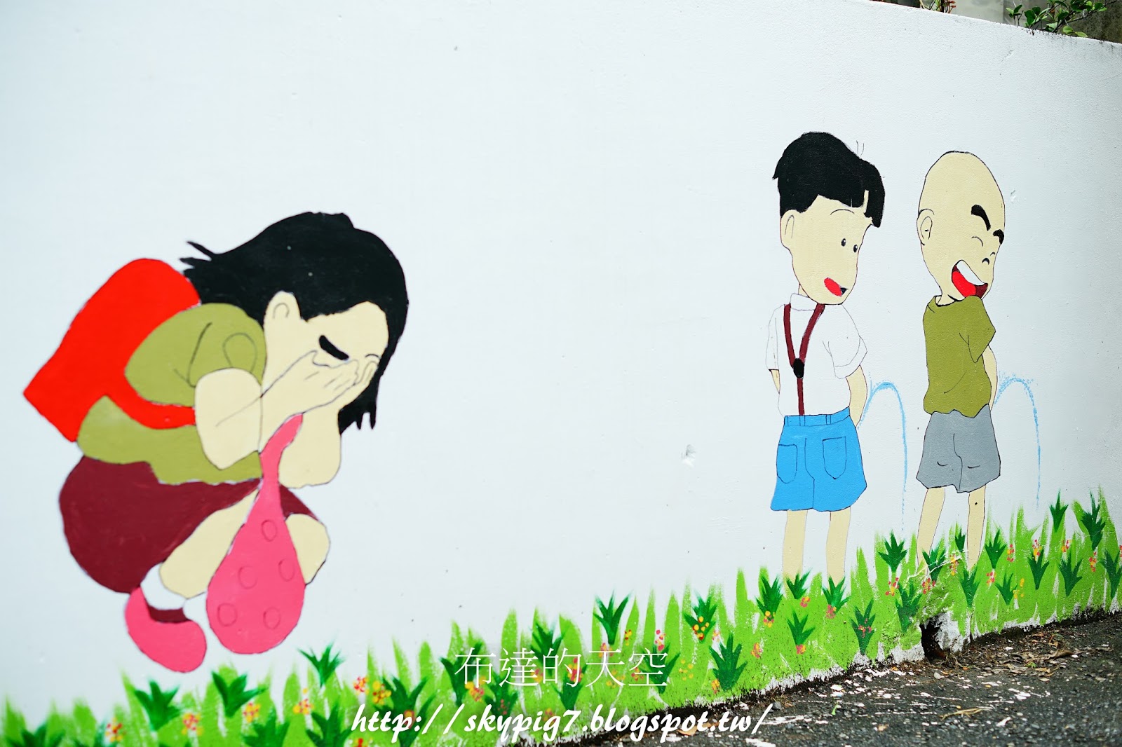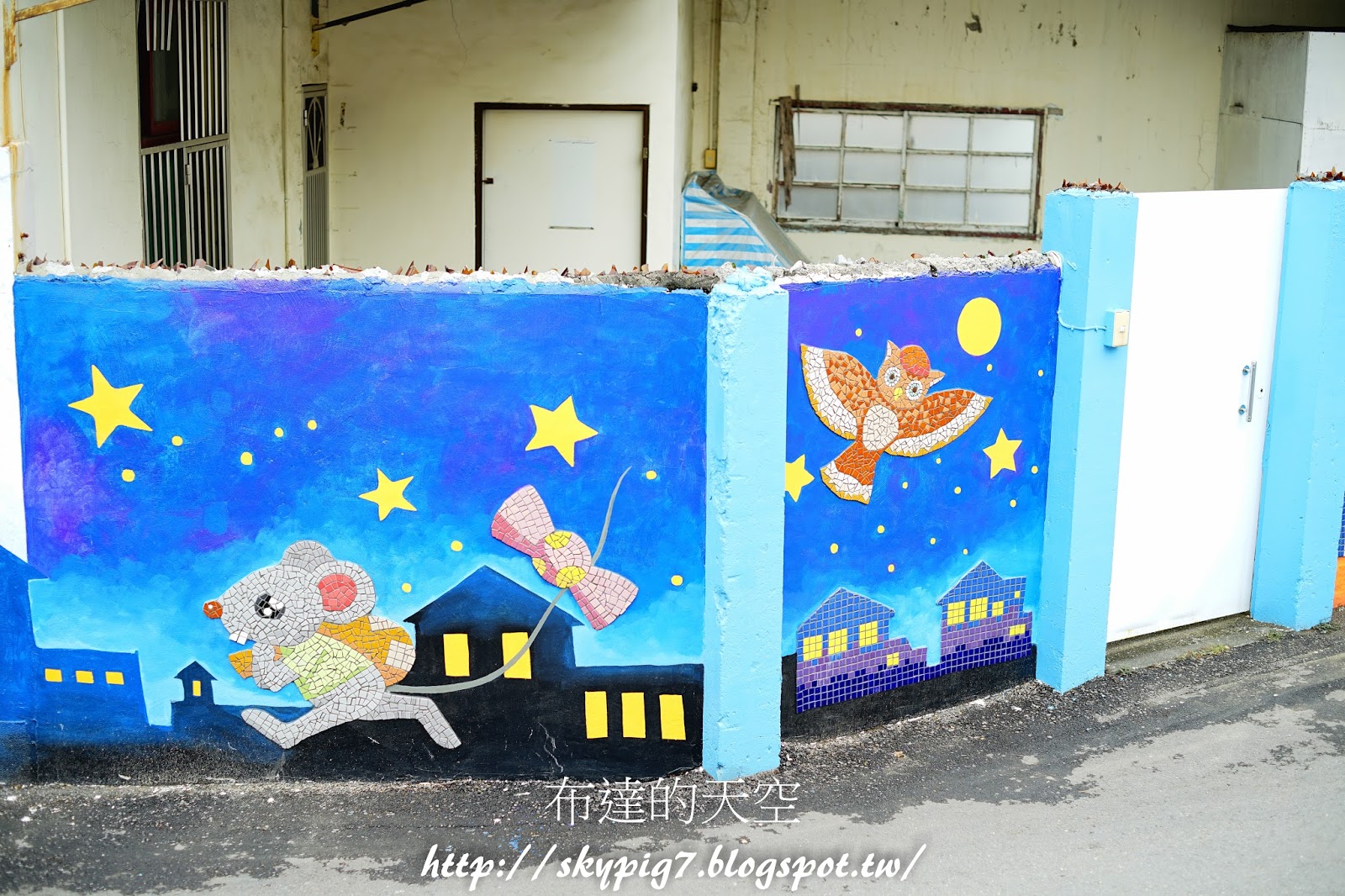 這次先介紹①跟②,因為③是我比較喜歡的龍貓公車站,所以下一篇再說,先來看看①警察新村彩繪牆,佔地不大,邊走邊照30分左右應可逛完。