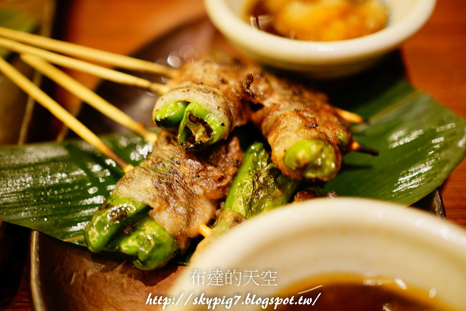 這道一樣是黑豚肉卷串,不同的是包的是小的青椒,日本才有,不會辣