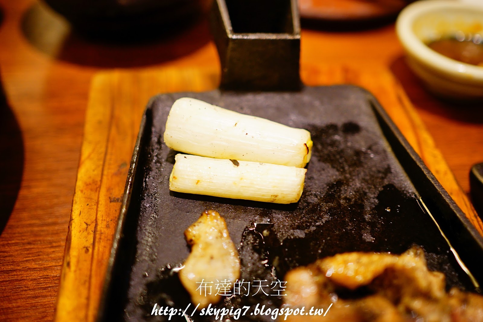 這道是黑豚肉卷串,韮菜用豬肉包覆著,沾點蛋黃吃下吃還蠻特別的