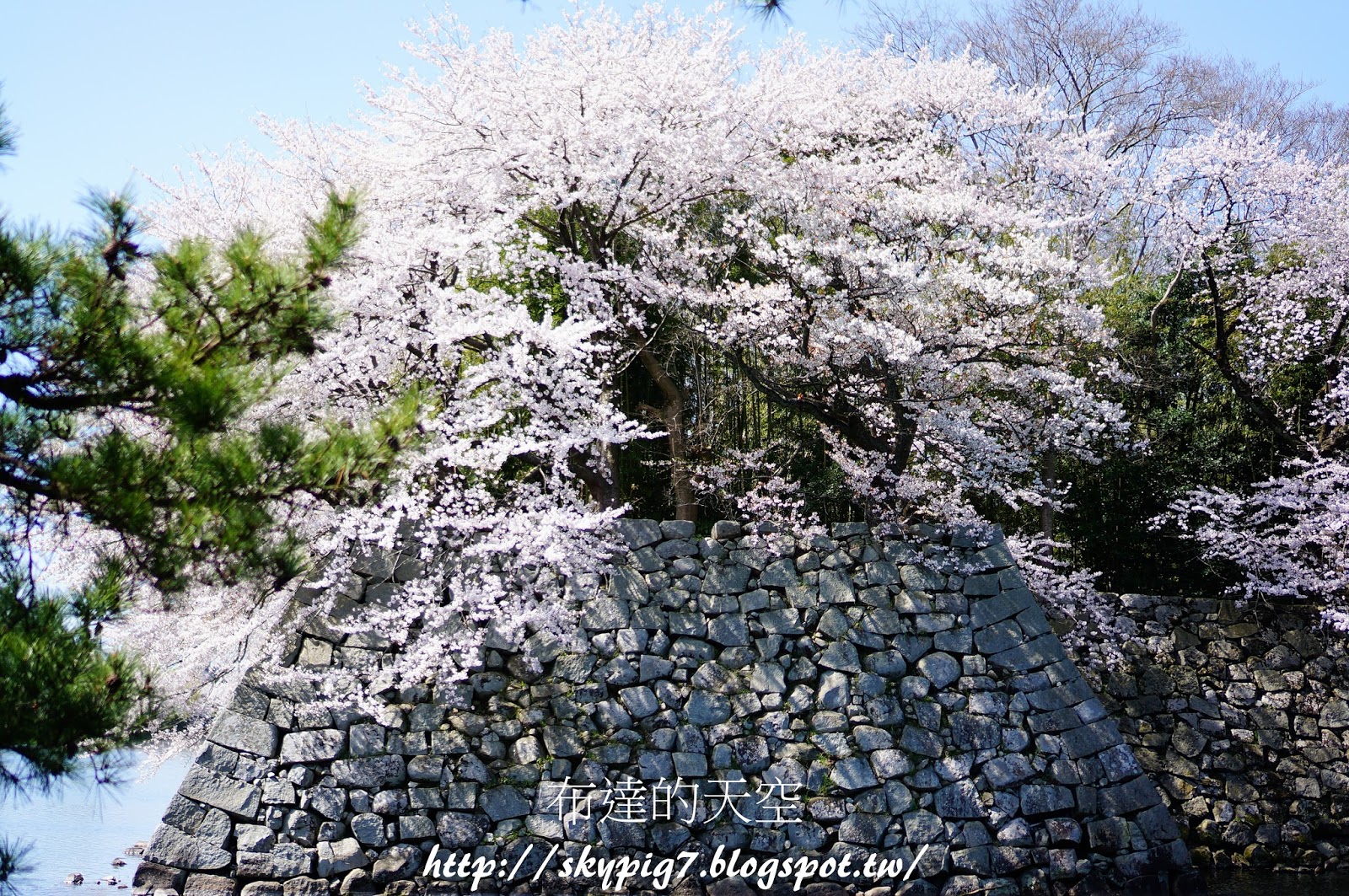 沿途就可以看到遺留下來的城牆,上面的櫻花滿開啦