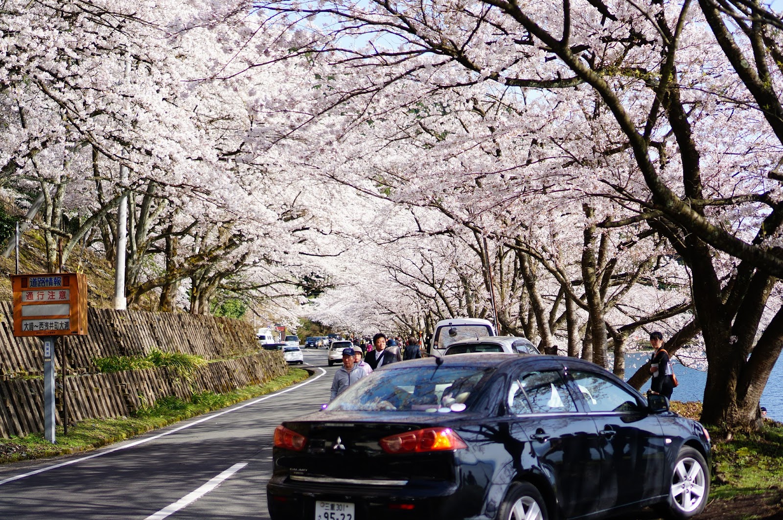 如果不走湖邊,走沿湖道路的話,道路兩旁都是櫻花
