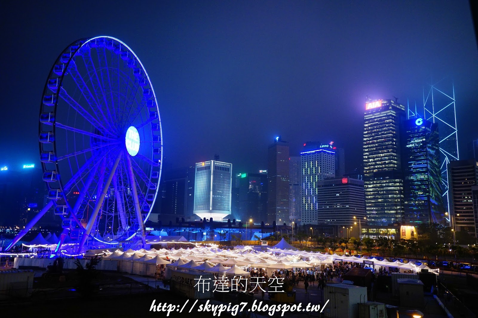 接著就到港口邊的摩天輪了,摩天輪下方的帳篷有藝文活動進行中,而黎明的演唱會場就在摩天輪右手邊的藍色處