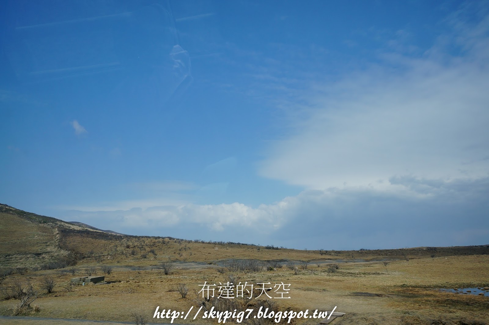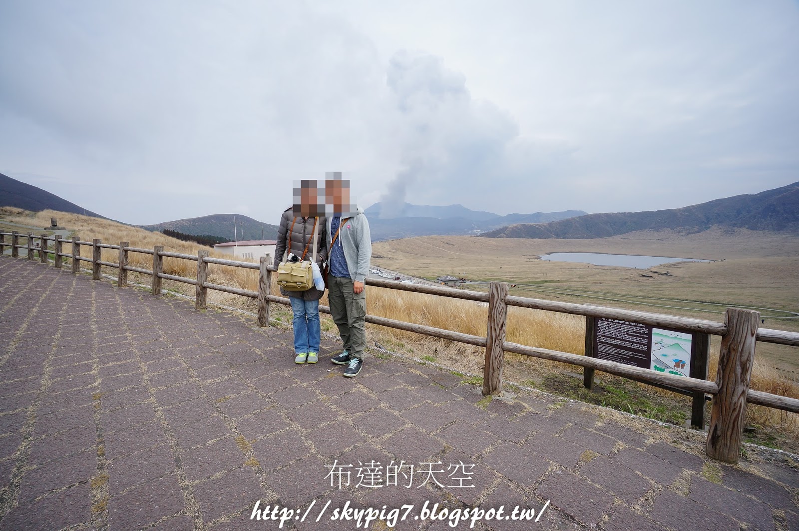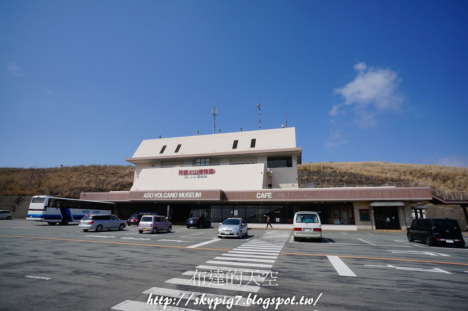 首先到第一站下車的地方,這裏就是草千里跟阿蘇火山博物館的上面,司機大大會請遊客下車,說明後面就是草千里,火山博物館就在草千里的對面,然後幫遊客拍照