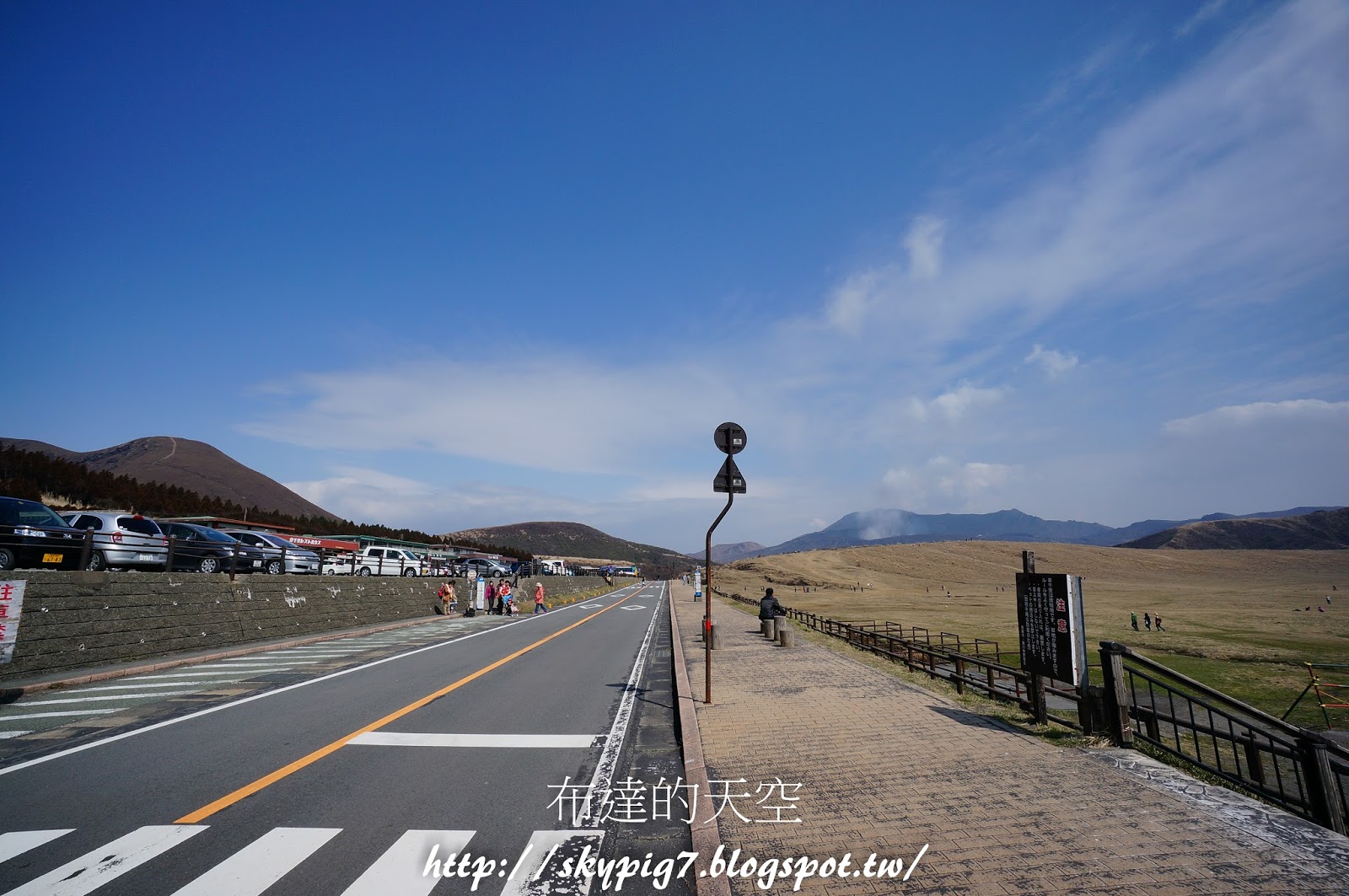 右手邊就是草千里,左手邊是停車場跟火山博物館