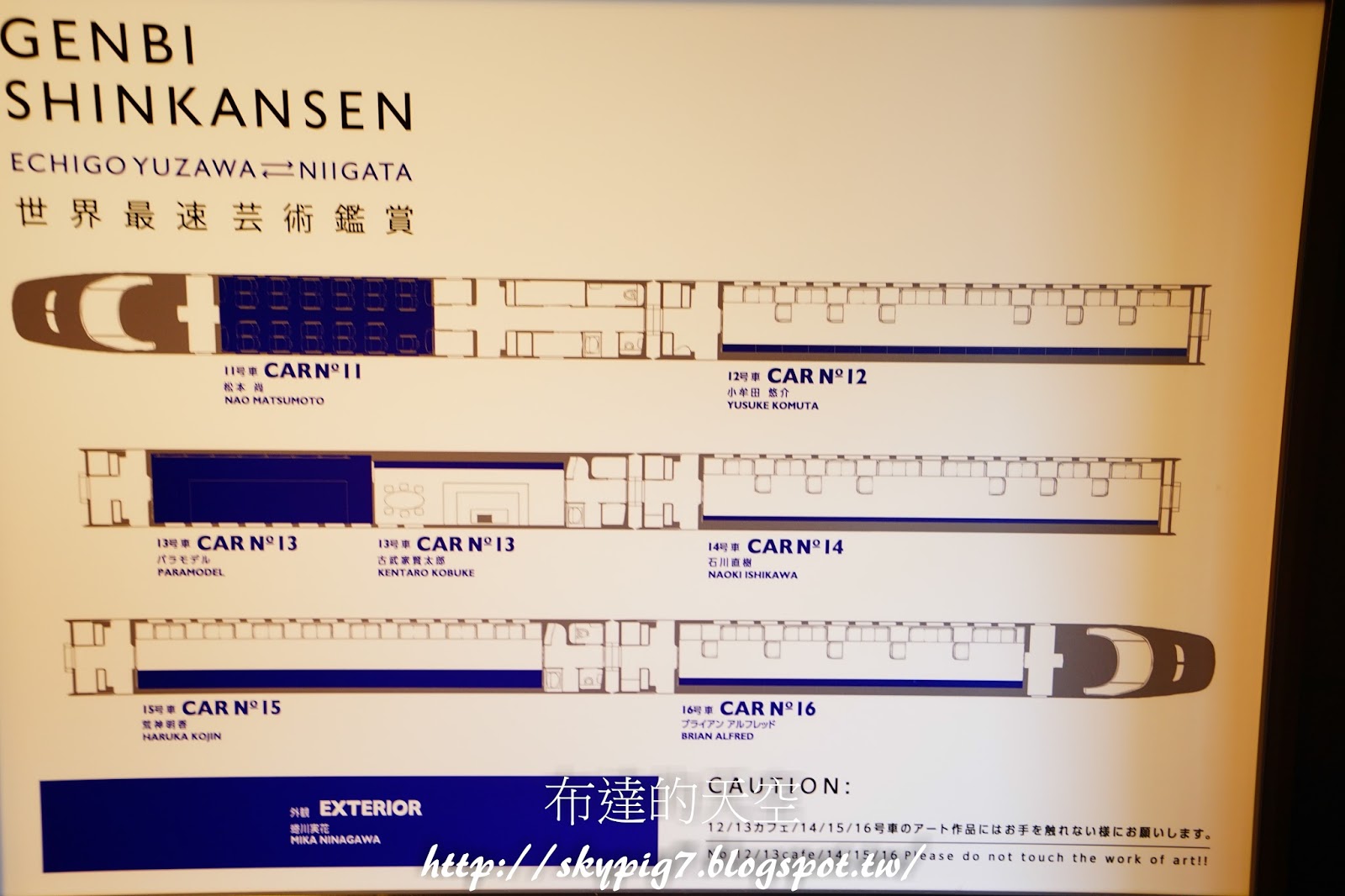 去了日本許多地方,每次都希望嘗試點新的事物,這次難得來到新潟,當然就要坐今年才行駛的現美新幹線囉。記得在去年來日本的時候,就已經看到現美新幹線的廣告,內容寫著這台特色列車是「會走的美術館」、「世界最速藝術鑑賞」等形容詞,於今年2016/04/29通行,所以今年一有機會就特別趕來看看。