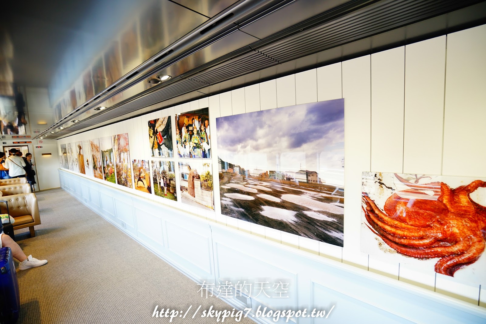 ▼第14車(石川直樹):東京出生的攝影家,牆上掛滿「潟與里山」為主題的攝影作品,可以悠閒的坐在米色沙發上,欣賞大師的作品