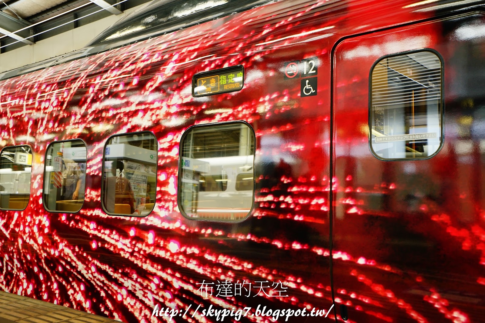 ▼列車主要分成六節車廂,不論內外都呈現不同的特色,而車體的外裝就是由蜷川實花所設計,充滿著蜷川味。首先是第一節車廂的外觀