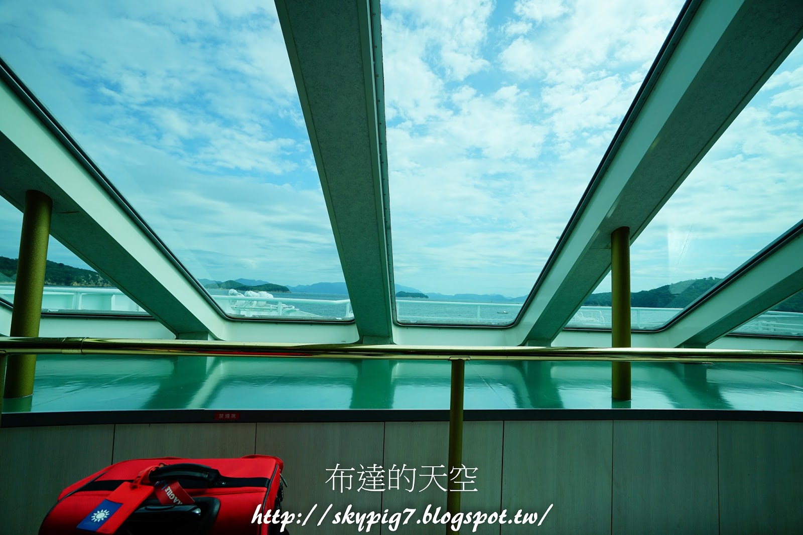 ▼最後選了船頭的座位坐下,一邊欣賞著藍天白雲的好天氣,一邊往小豆島前進