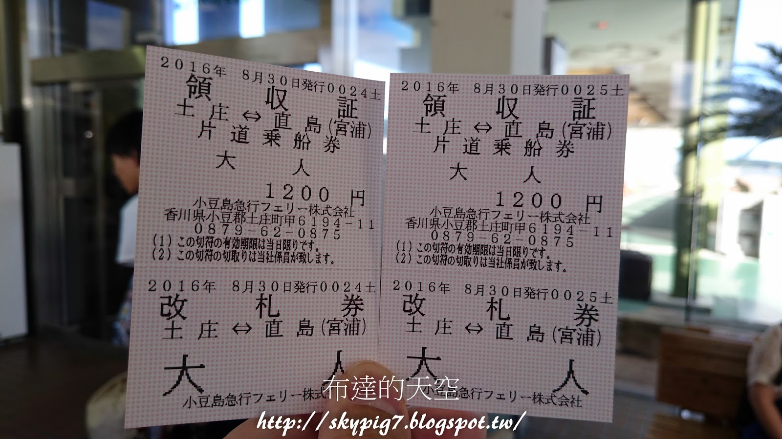 ▼航班是08:10出發到直島的宮浦港,一天只有二班,另一班是14:15發;回來也只有2班,分別是09:00跟15:05,我們這次是當天來回有點趕,如果可以的話,最好選擇在直島夜宿一泊,很多藝術品晚上還有打燈,跟白天看到的是完全不一樣的風貌