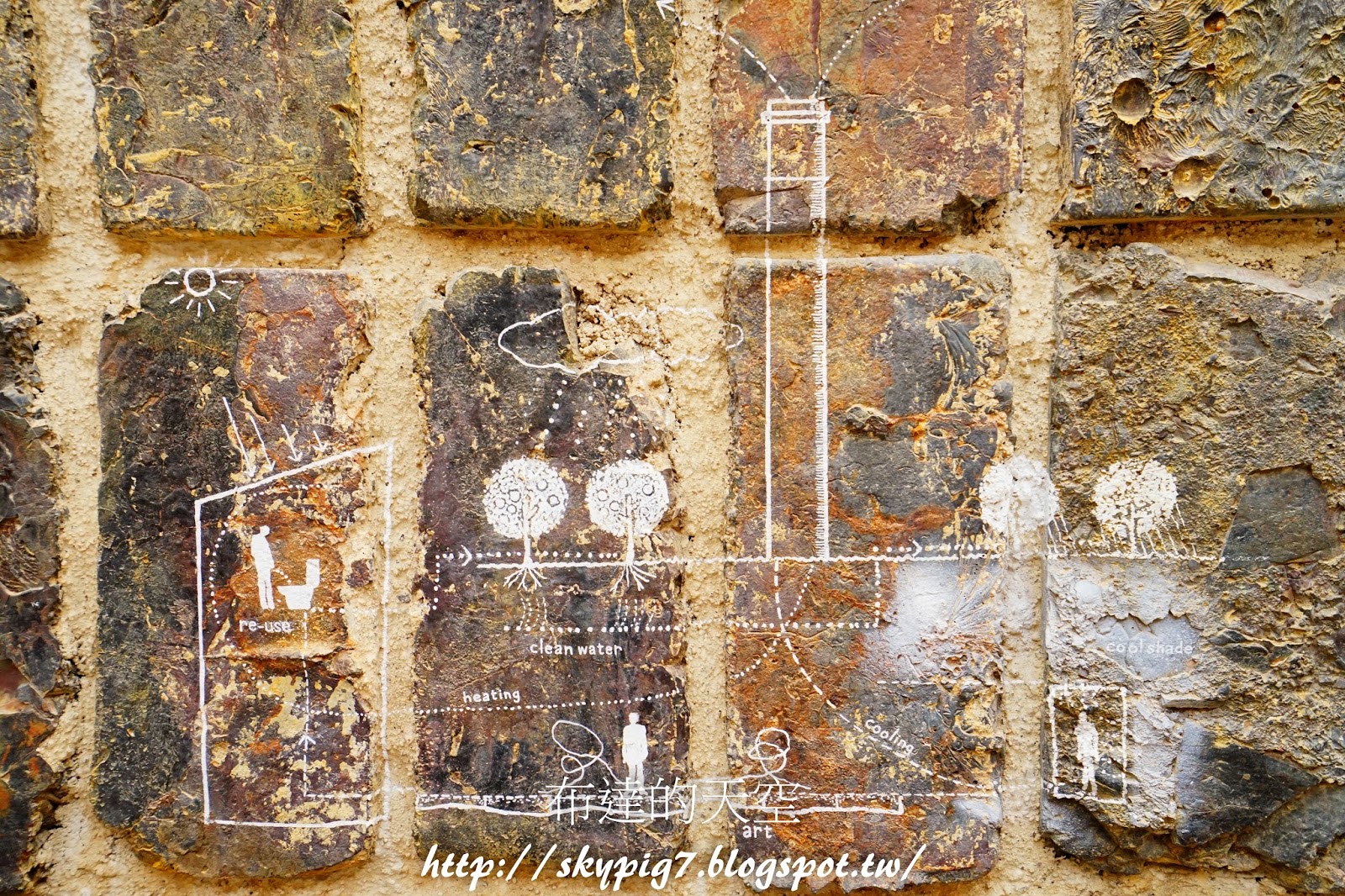 ▼原本是石匠居住的地方,作者在原址運用島上收集到的材料,排列成具原住民風格的圖騰
