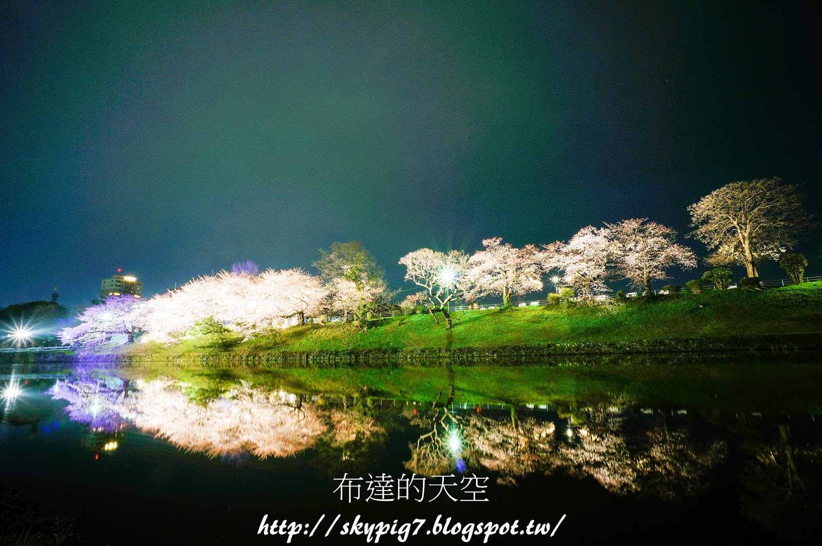 ▼護城河旁種滿了櫻花,配上倒影跟畫一樣美