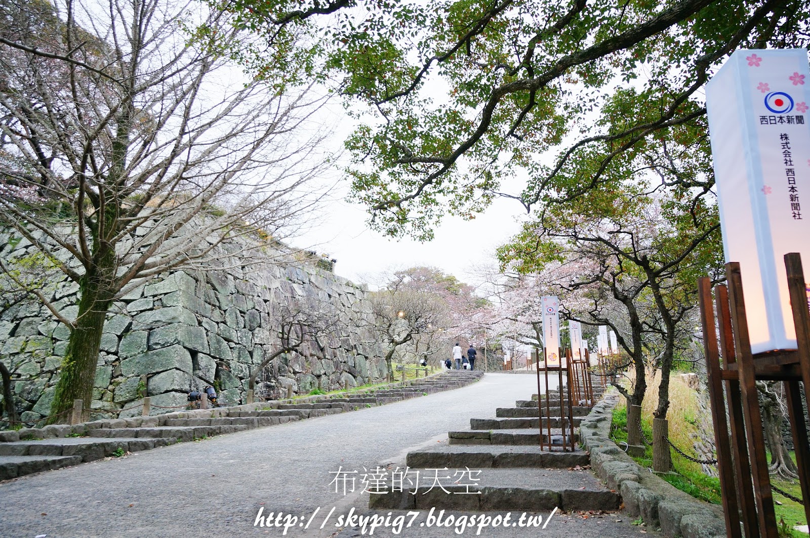 ▼順著路走上來主要會分成東西兩側,西側會經過藤園後往大濠公園的方向走去,風景還不錯,在櫻花季時會有很多小吃攤出現