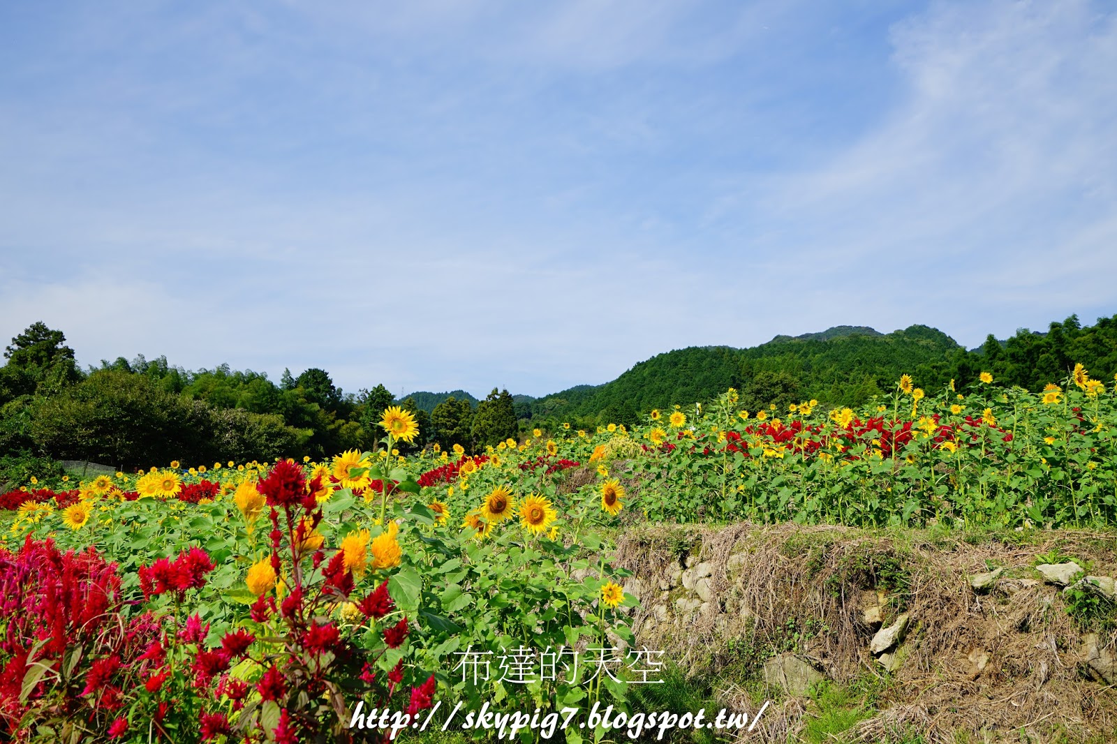 ▼除了一大片向日葵之外,還有很多紅花,這個應該叫做一串紅吧