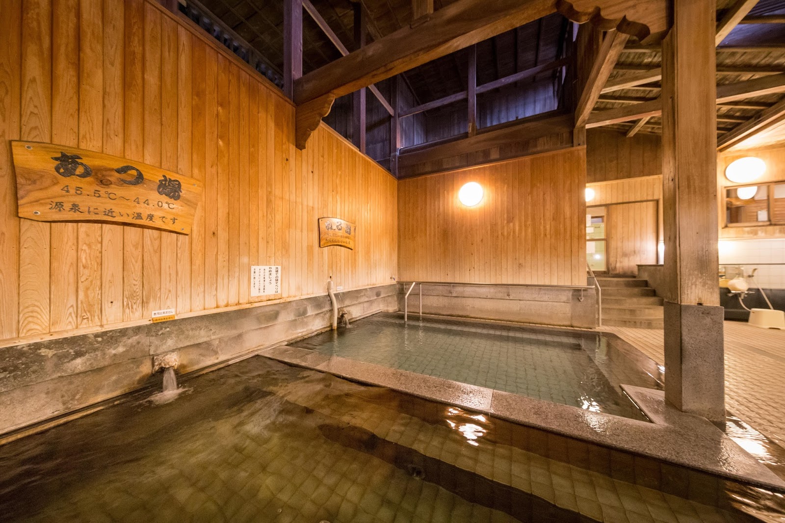 ▼放好行李後,記得帶100円進去,裏面的衣櫃可投入100円鎖住,使用完畢會退還。進去後不能拍照,附上官網的照片,裏面是歷史悠久的湯屋,四周是木頭打造,在裏面泡湯可以感受到純正日本泡湯風味