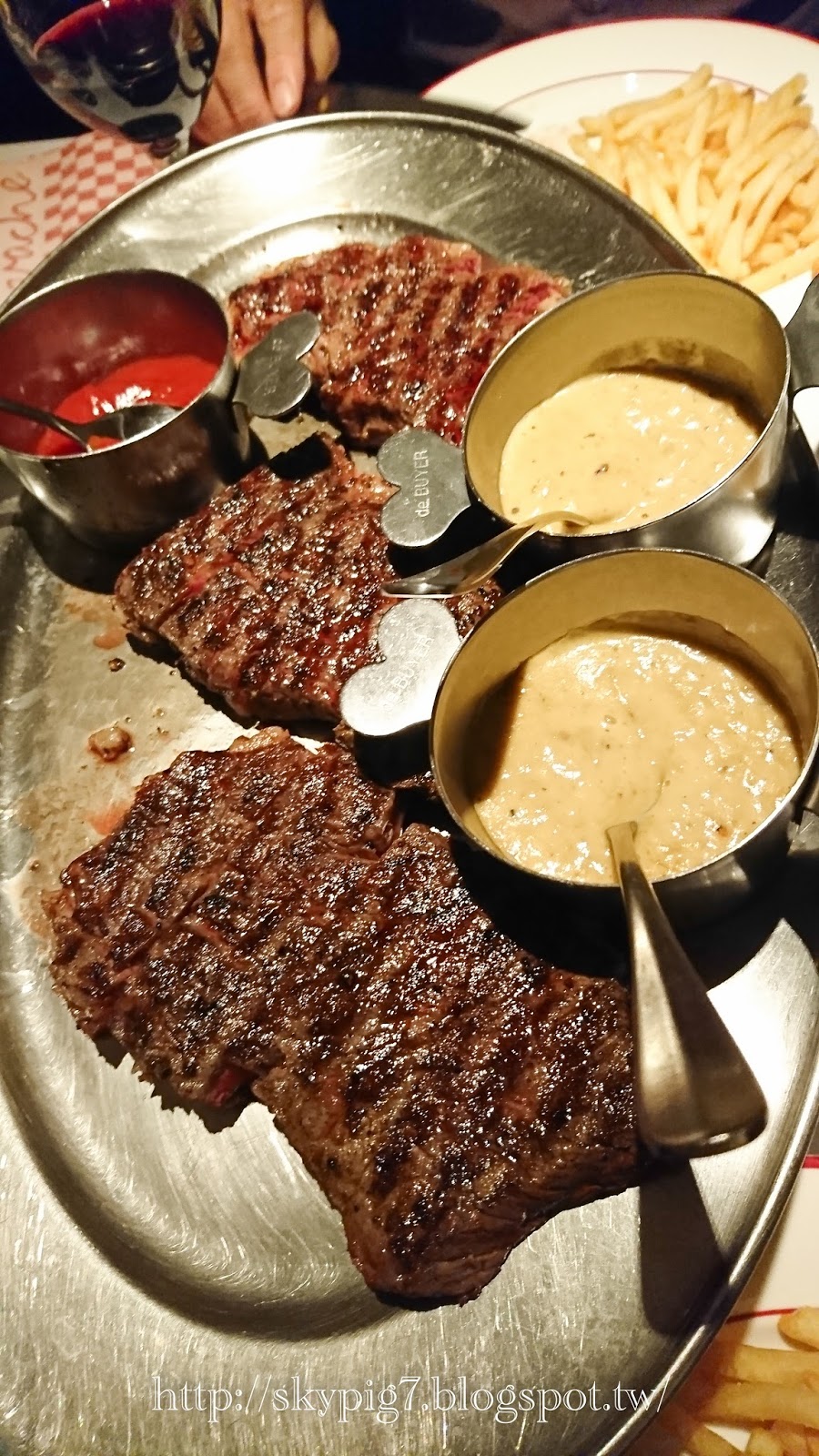 ▼三人牛排套餐,加一瓶紅酒,還有一個甜點,總共1,562港幣,喜歡吃牛排的話可以考慮來這家看看