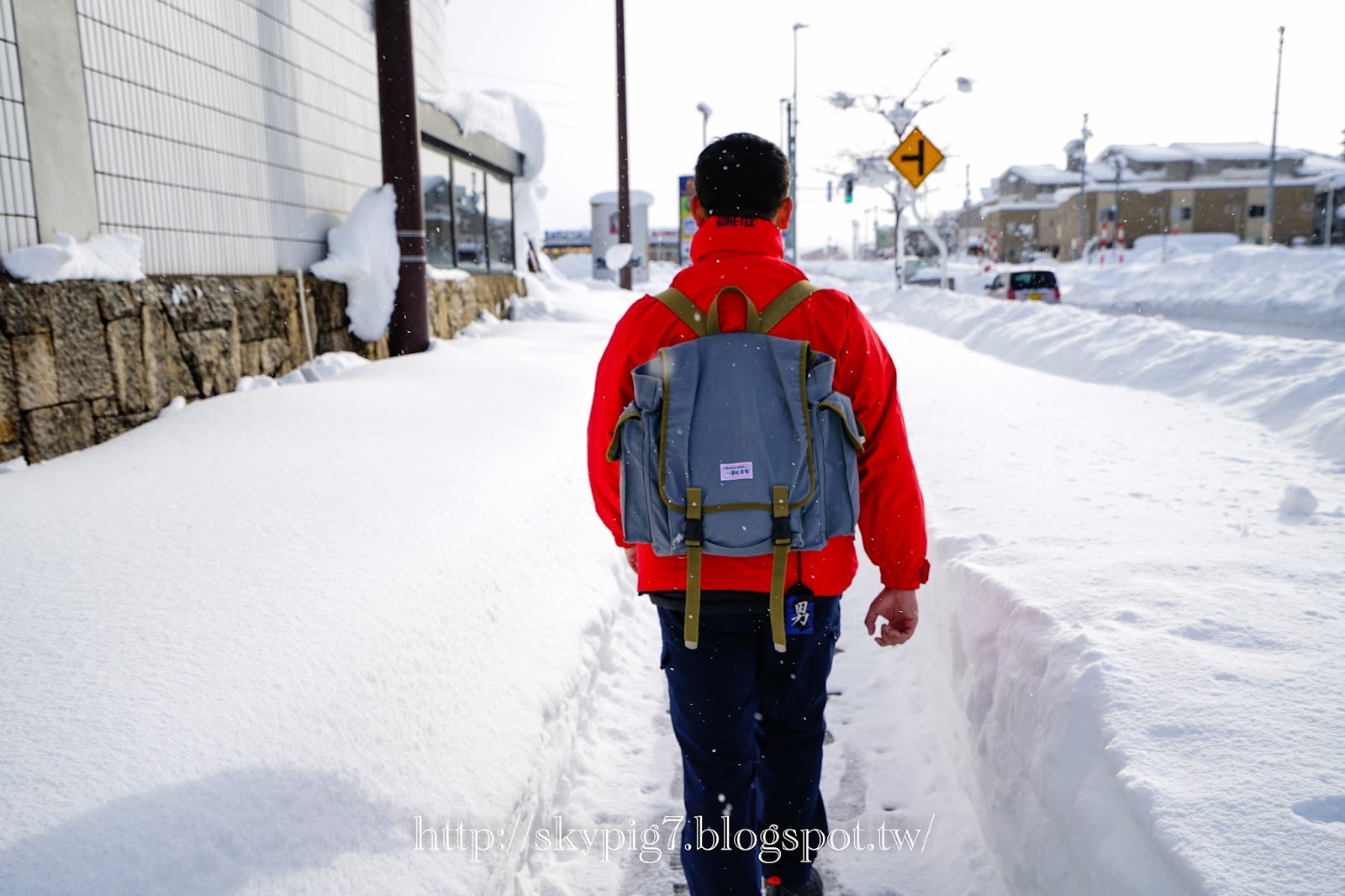 從車站到東光の酒蔵約1.7公里,我背著背包風雪無阻往前走
