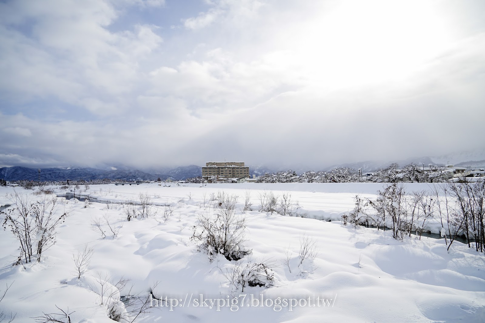 ▼今天中午在べこや吃完米澤牛後走過來,沿途都是雪,連橋上人行道都積滿雪