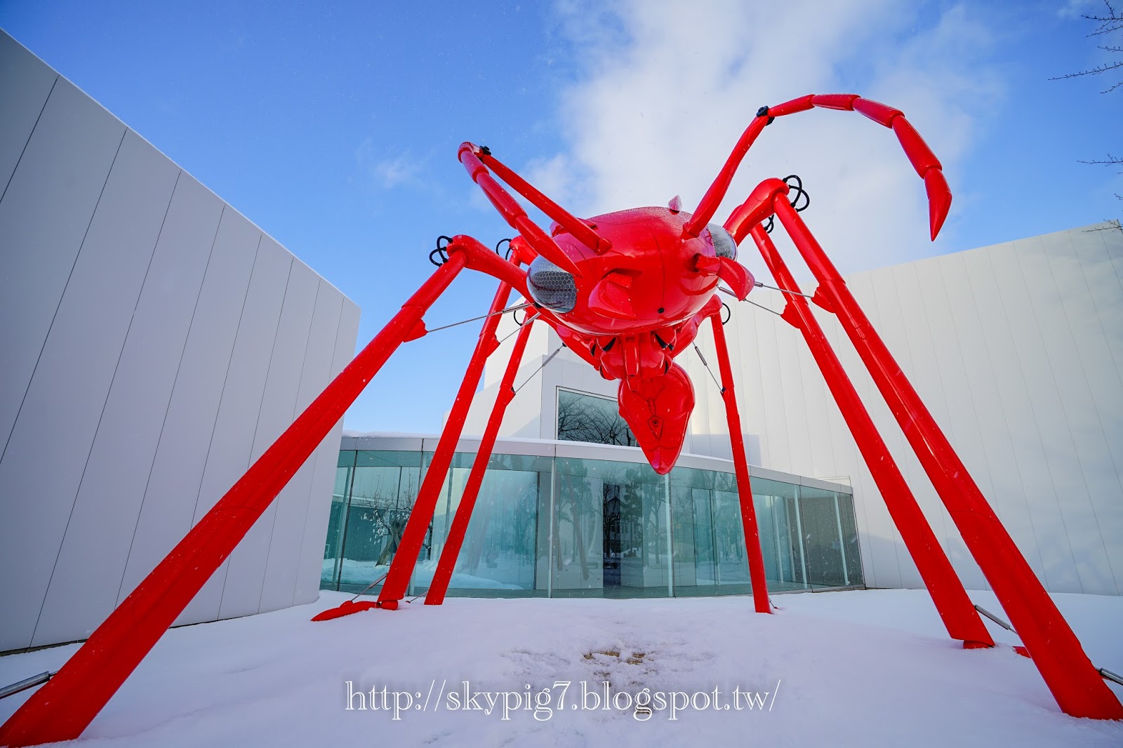 ▼「アッタ」,作者是日本人椿昇,這時天氣慢慢的變好了,我期待的藍天白雲出現了,這隻紅色的大紅螞蟻佇立在美術館前面真的是迫力滿點,也讓我想起六本木之丘前面廣場上那隻大蜘蛛,不過作者不同人