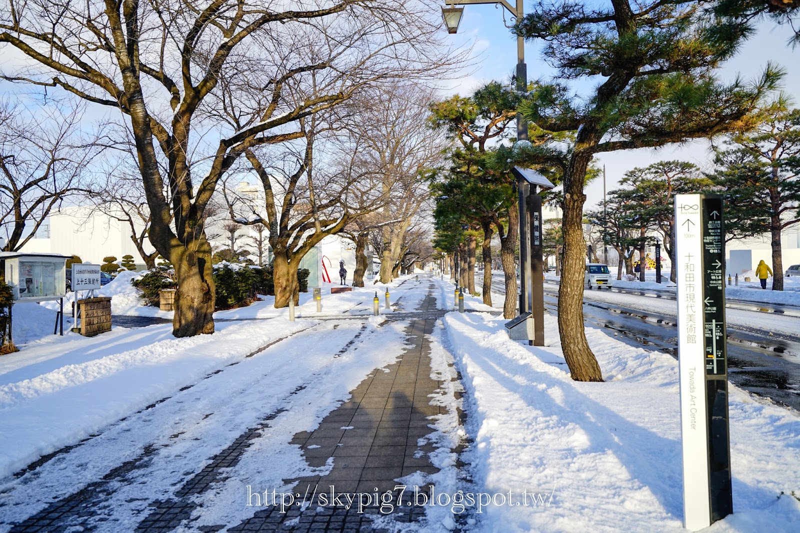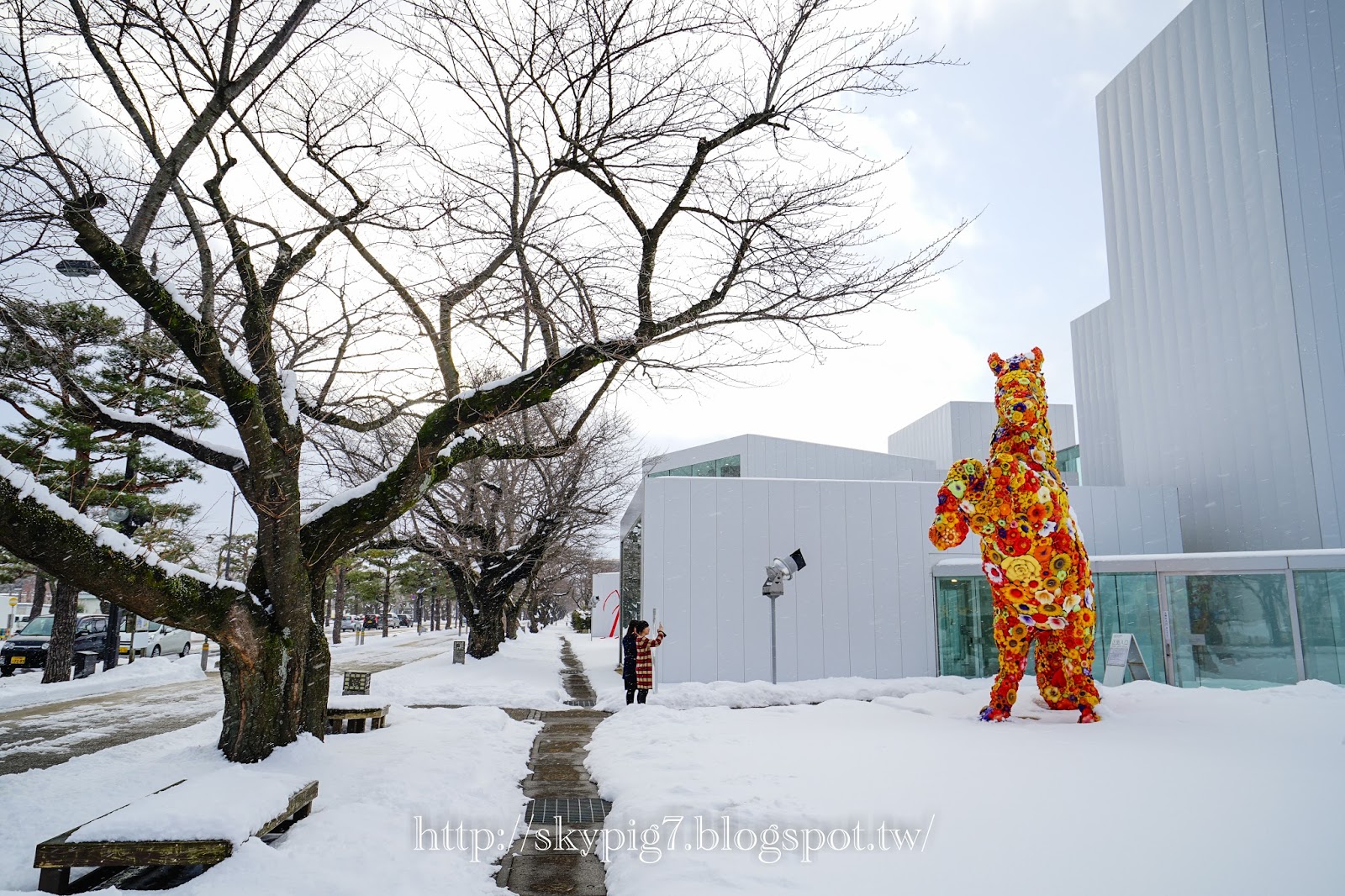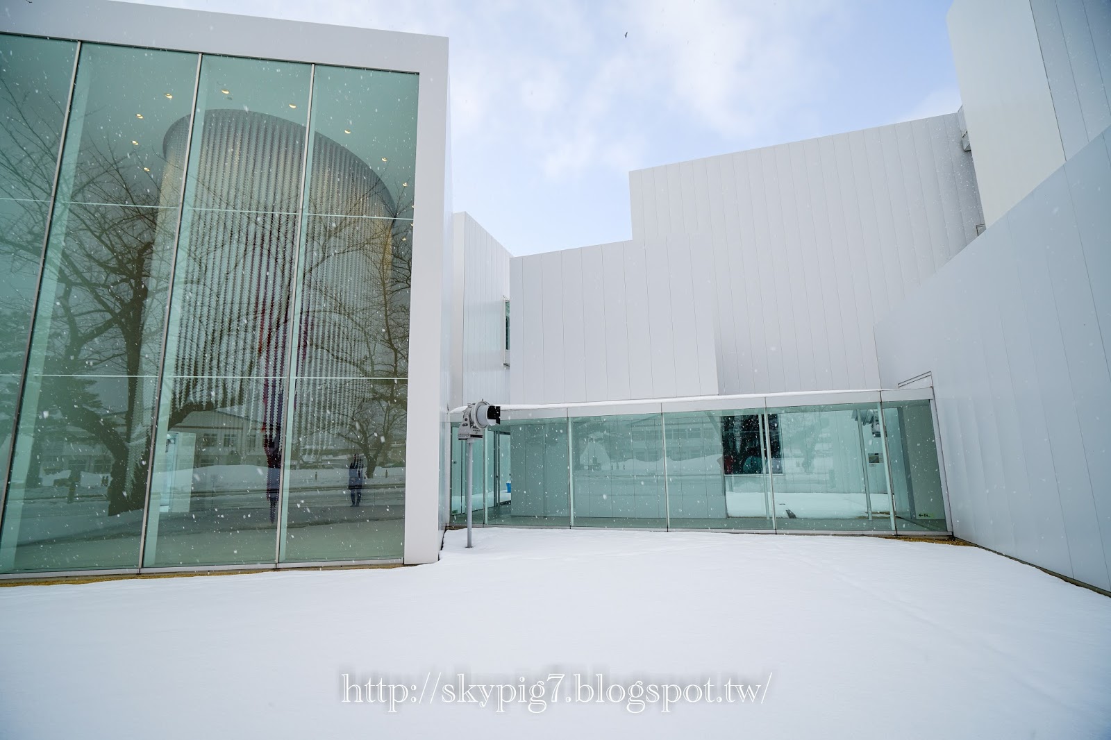 ▼下車後往十和田美術館的方向走,天空仍舊昏暗,白雪慢慢飄落