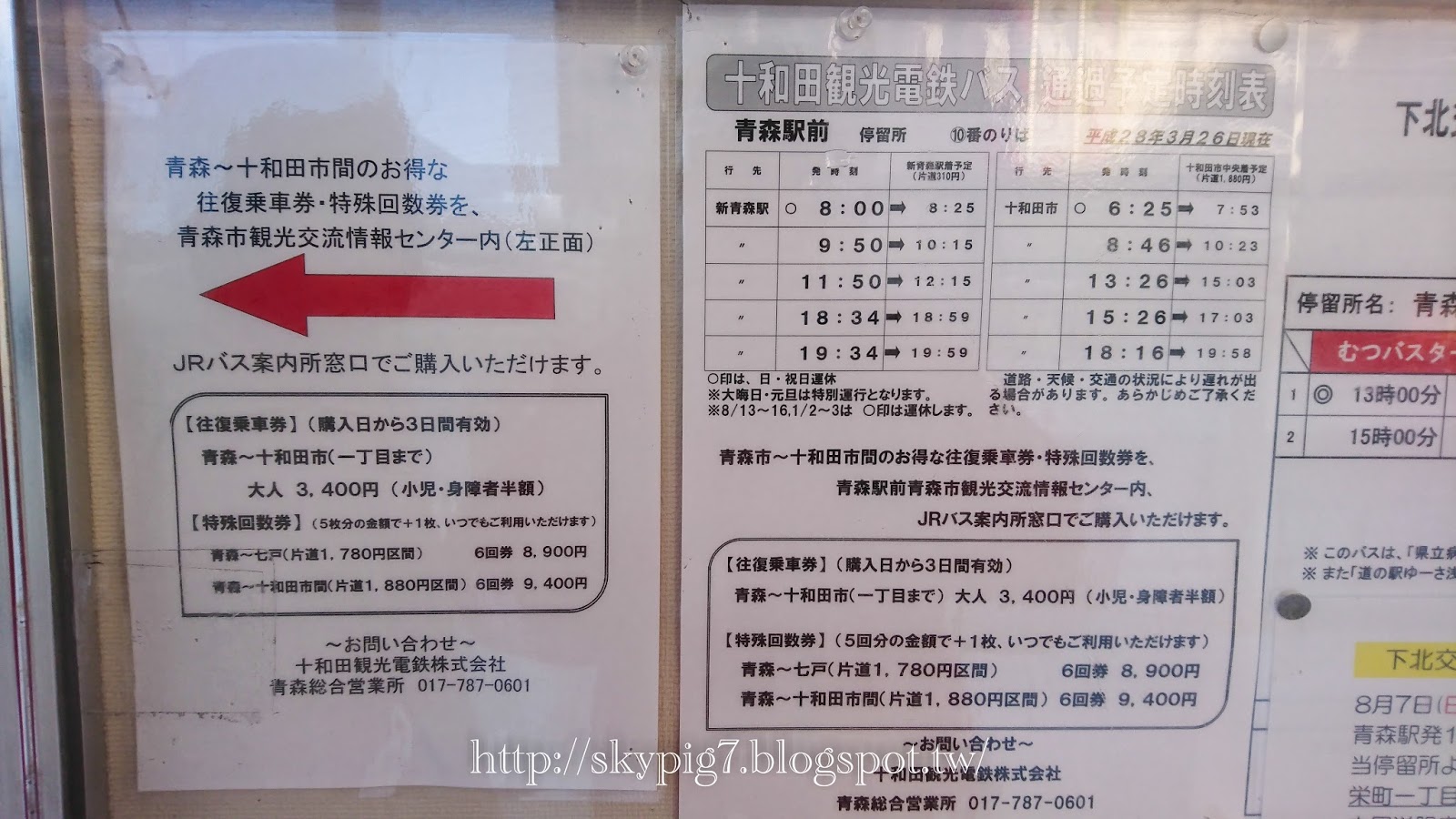 ▼左手邊寫著3,400円的優惠套票,右手邊則是時刻表,我這次坐13:26從青森發,如果去十和田市中央的話約15:03到