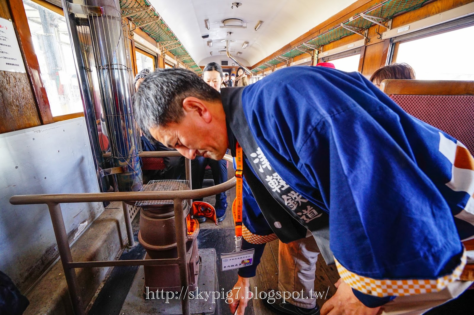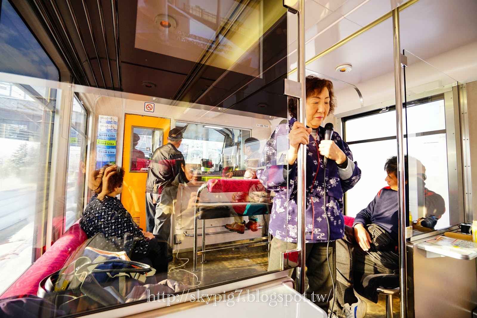 ▼接著來一位像是車掌小姐,會邊介紹這台暖爐列車,歡迎大家的光臨,然後幫忙烤魷魚