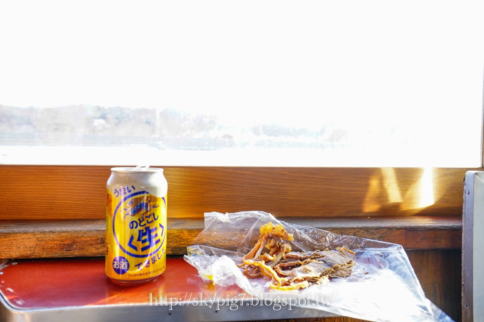 每次來日本,如果有機會的話,都會安排特色列車的行程,這次來到青森,當然要搭乘冬天限定的津輕鐵道暖爐列車,在火車上賞著窗外白雪的大地,一邊喝著啤酒,一邊吃現烤的魷魚,算是最高的享受了。