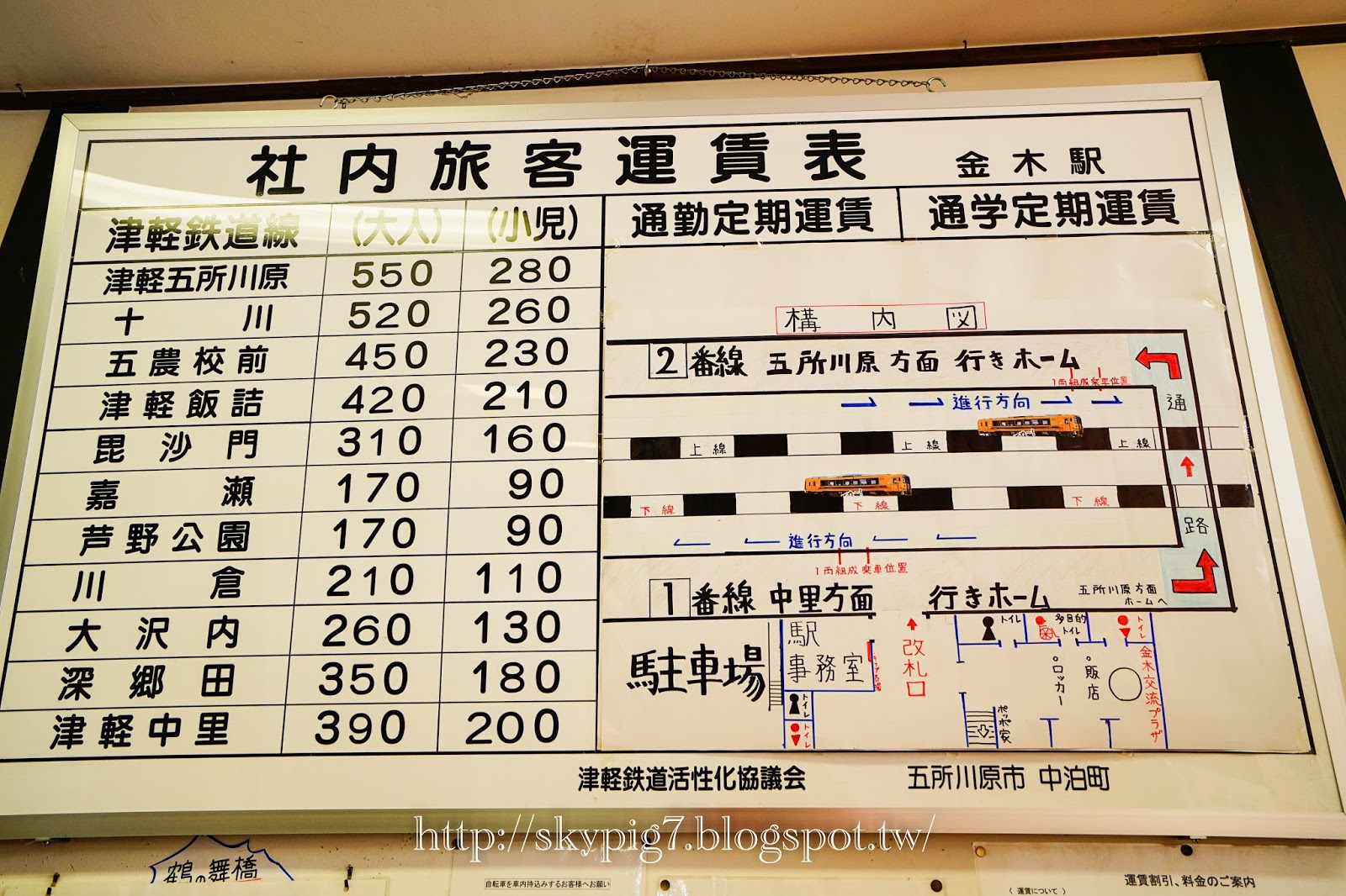 一般人都只會坐到中間的金木站,至於班次表可參考這次筆者所搭乘: