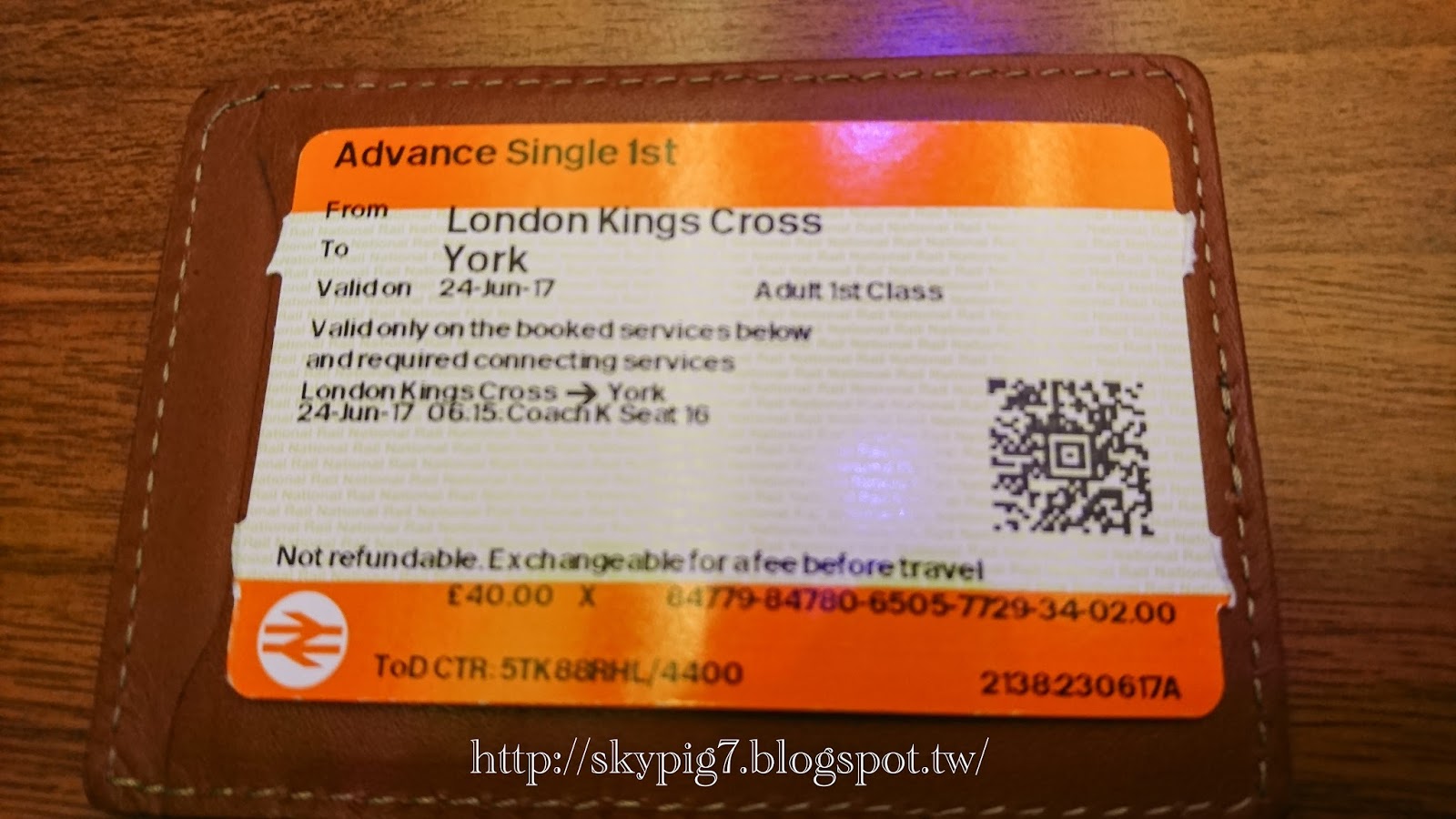 ▼從倫敦到YORK的交通首選火車,相距約303公里不算近,單趟約2小時14分,來回就要約4個半小時,記得車票一定要先買,有機會買到超便宜的票價。這次買的火車票時間如下: