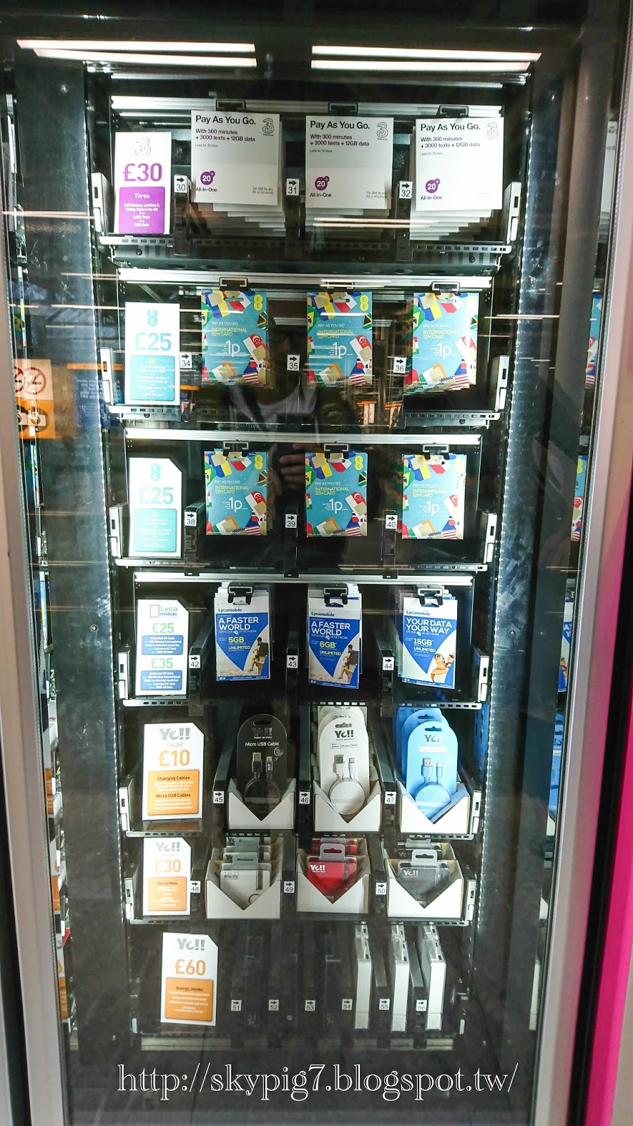 ▼到英國LONDON HEATHROW(LHR) TERMINAL 3(T3)通關後,第一件事先把網路弄好,走到提取行李1號處的旁邊,可以看到販售SIM卡機器,我要買的在最裏面